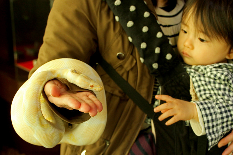 妻はヘビは苦手だと思っていたのですが、自ら「ヘビ触りたい!」と言って嬉しそうに触る姿には驚きました。