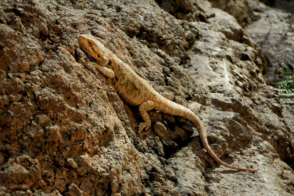 入り口を入ってすぐ右側にはガラスがあり、その外は野外になっているのですが、ここにはたくさんのフトアゴヒゲトカゲが飼育されています。