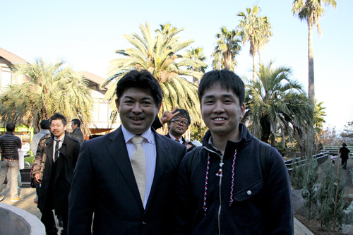真ん中の白いネクタイの方が園長の白輪さん、一番右にはiZooのロゴをデザインされた、みのじさんです。