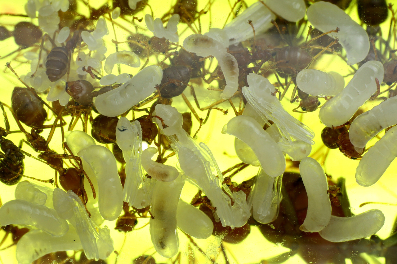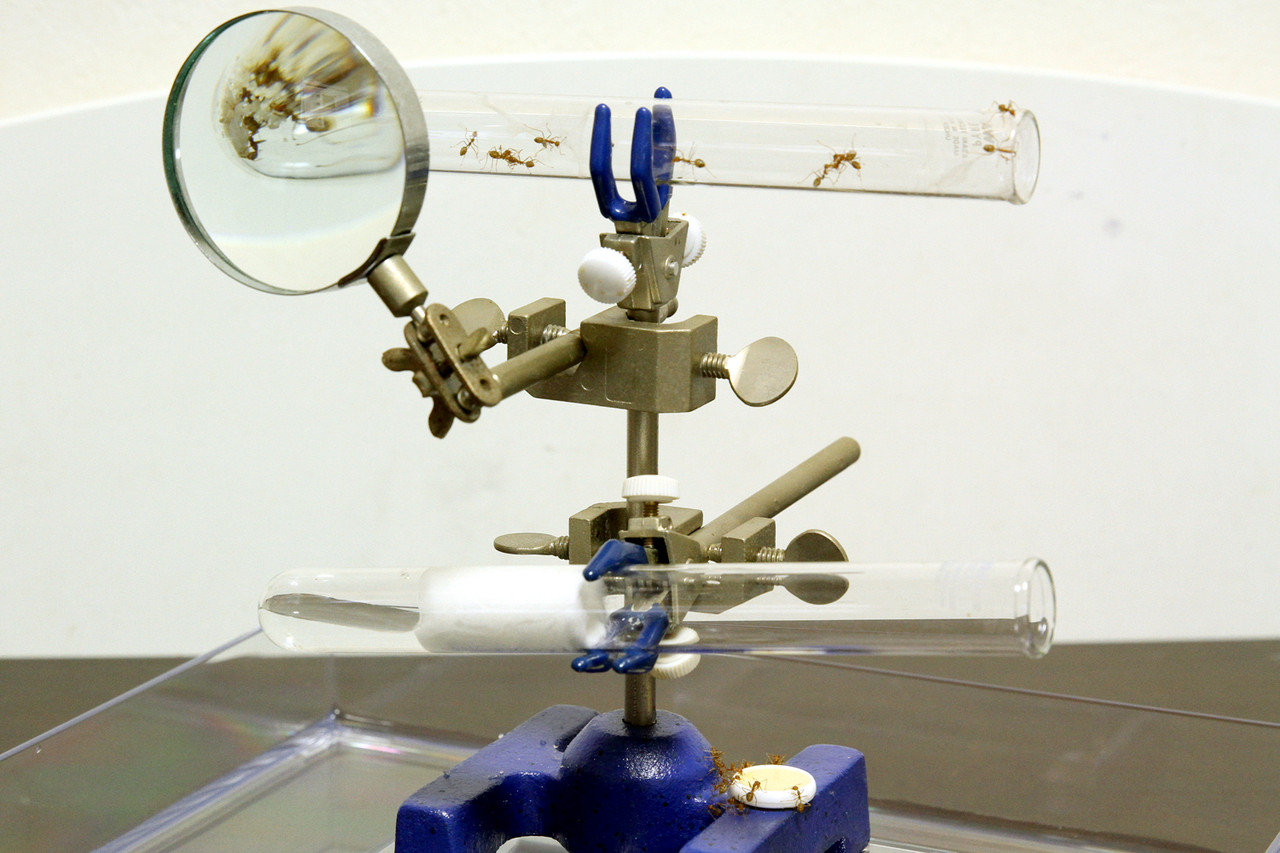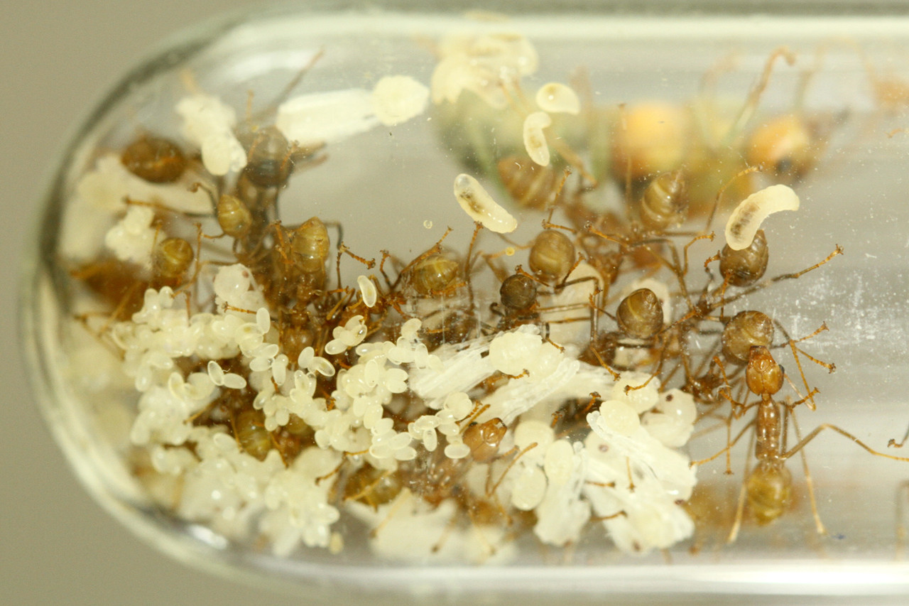 樹上性のツムギアリは蒸れに弱いため、密閉性の高い石膏巣での飼育は不向きで、試験管を使って飼育するのが最適です。