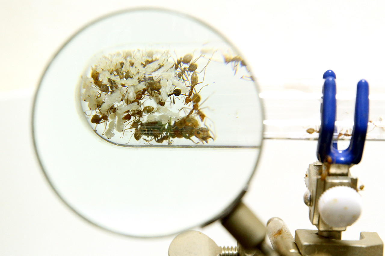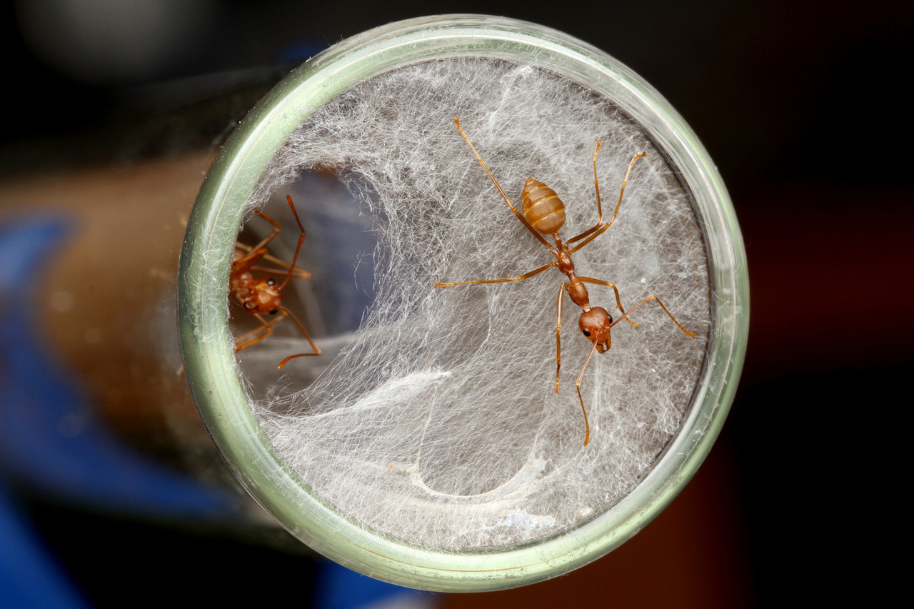 ツムギアリOecophylla smaragdinaの試験管飼育。