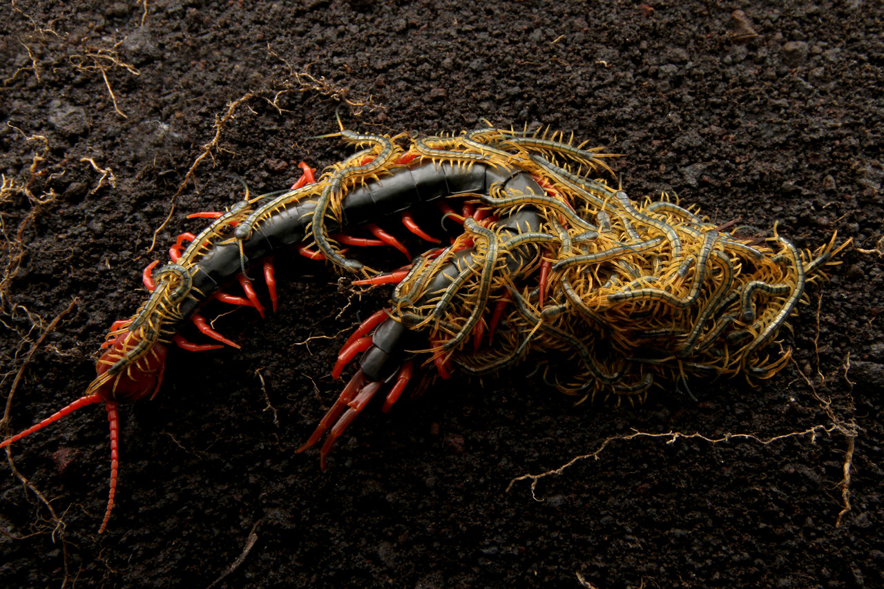 しばらく飼育をしていたトビズムカデの親子。