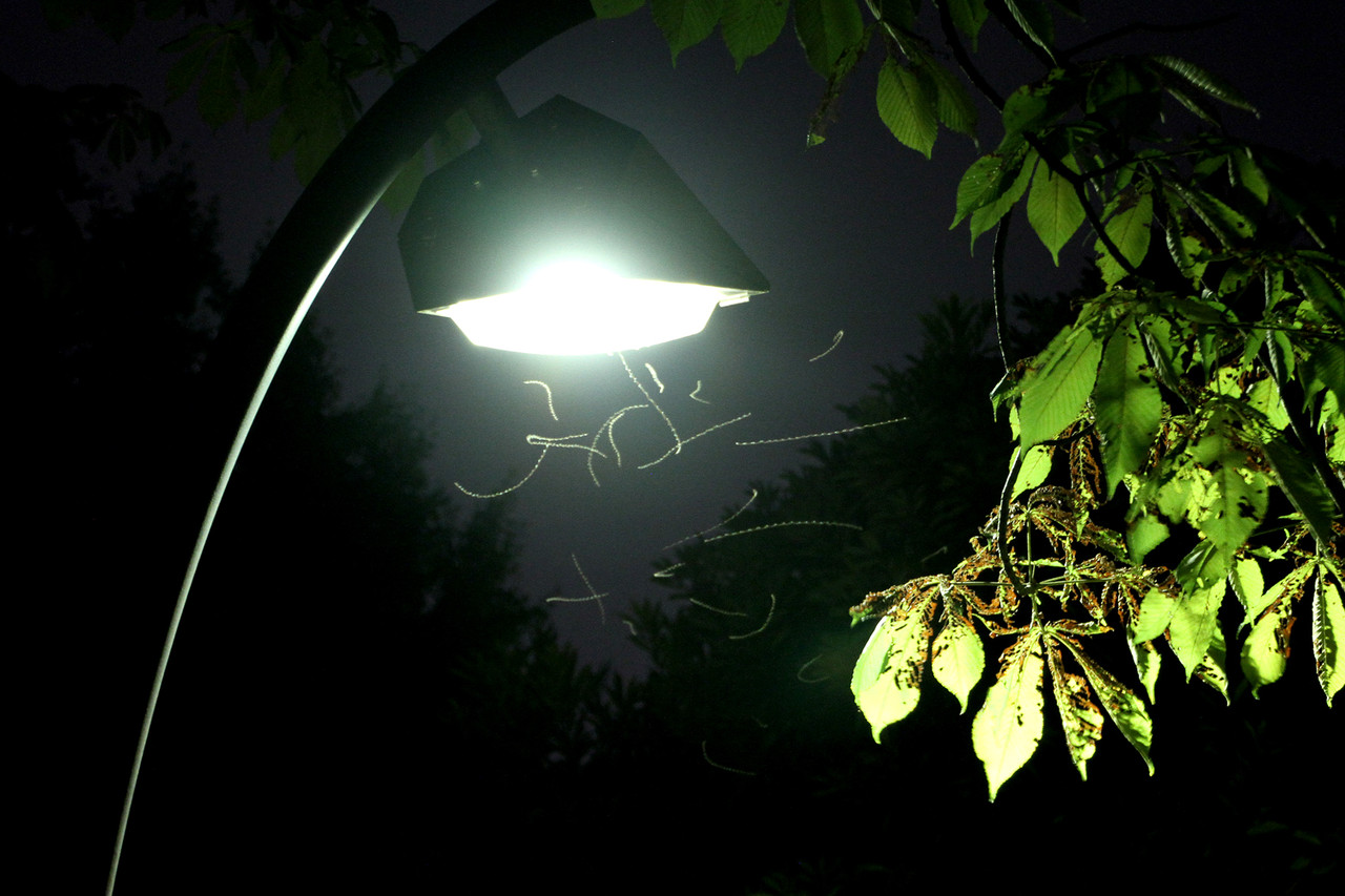 羽アリたちは、夜間コンビニや街灯などの灯りに集まります。