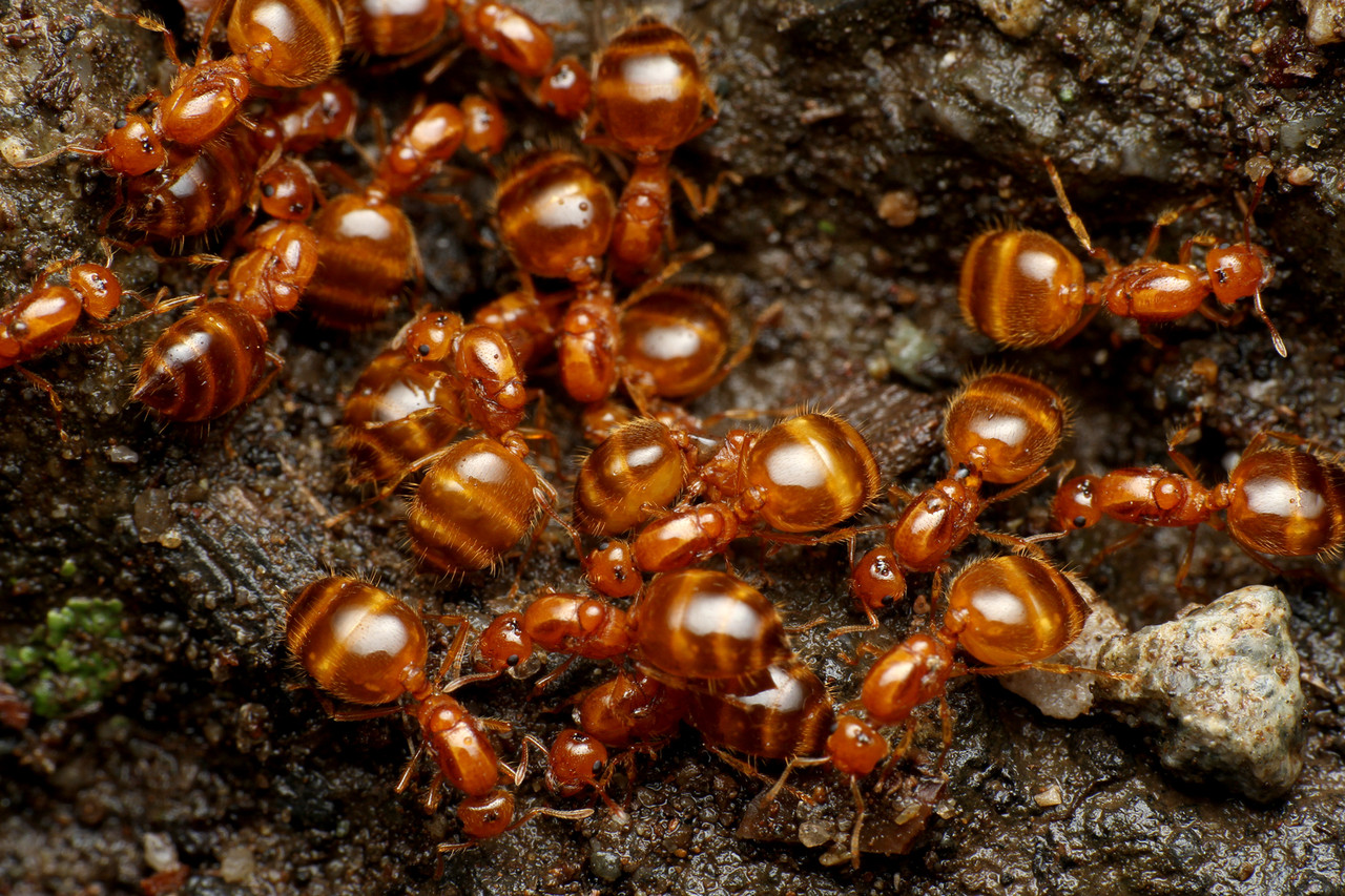 モテモテの女王アリには、たくさんのオスたちが群がってきます。