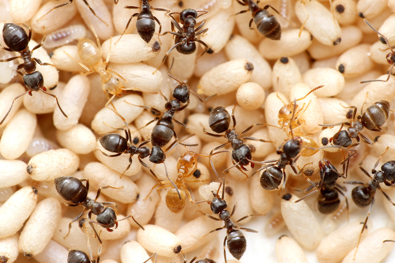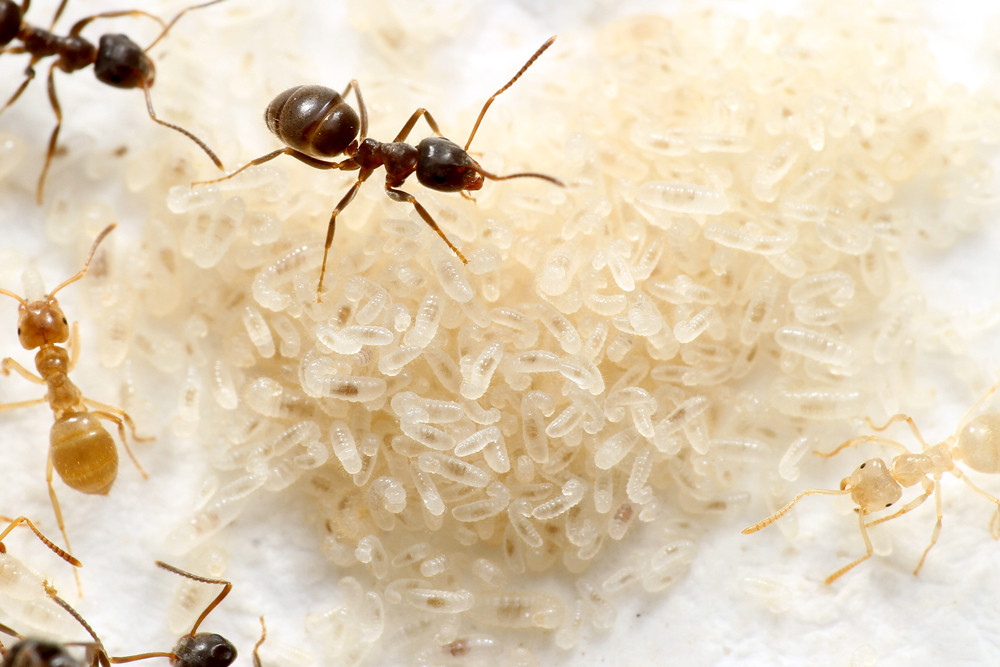 アリを飼育していると、年々女王アリの産卵数が増えますが、実はこれは女王の年齢よりも、周りにいる働きアリの数が影響しているのです。