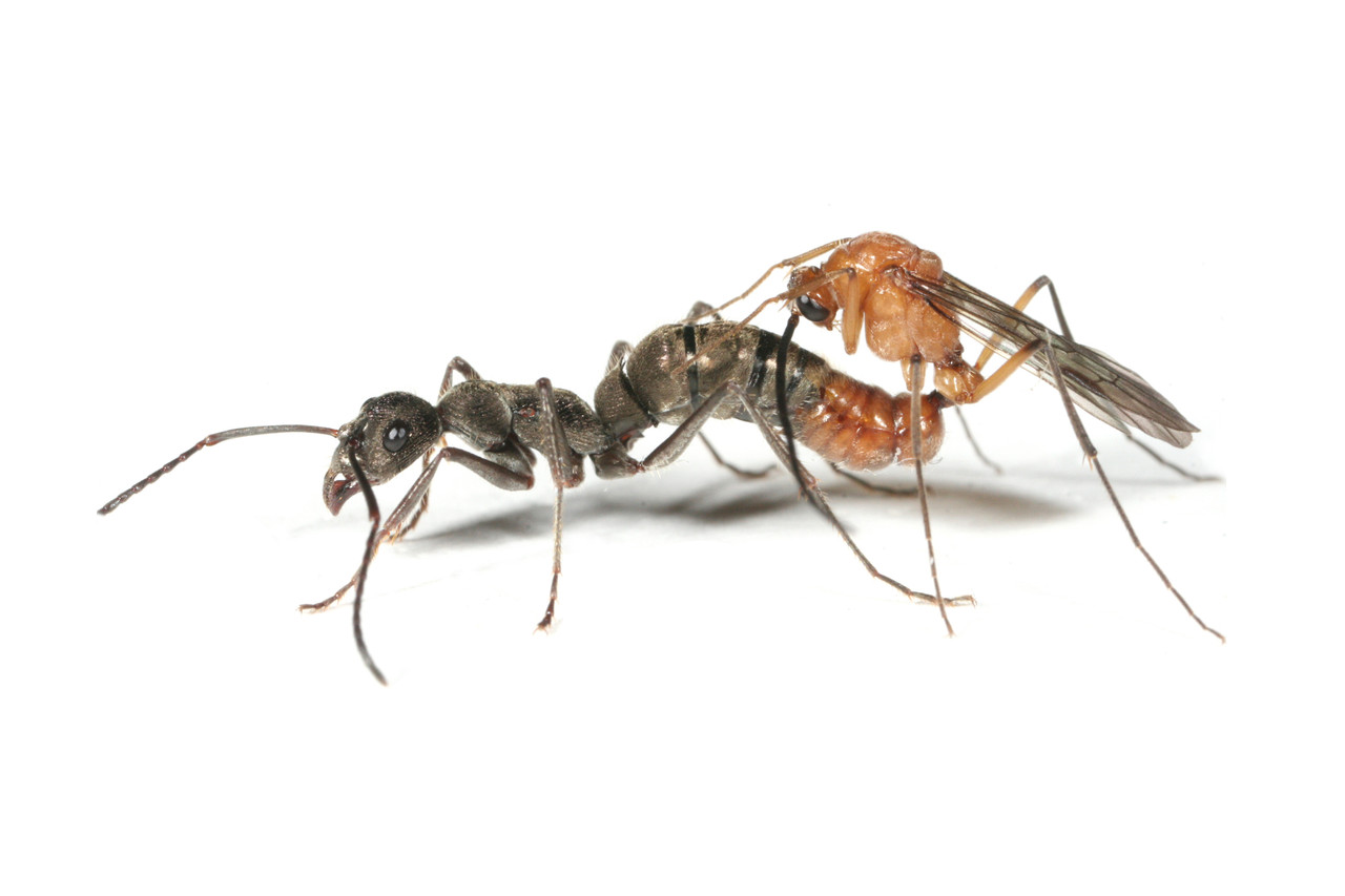沖縄に生息するトゲオオハリアリは、体長1cmと日本最大のハリアリ。