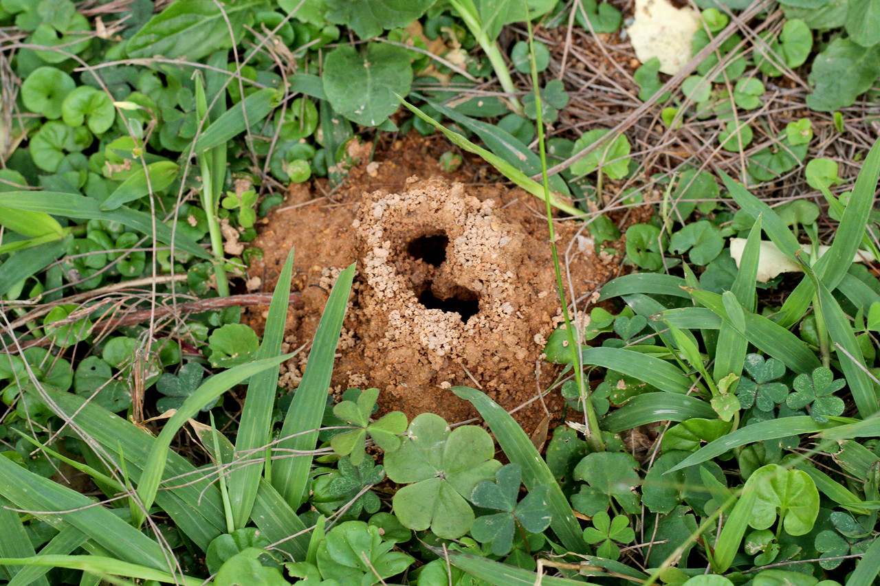 大型なアリで、地面に開いた巣穴も大きくて目立ちます。