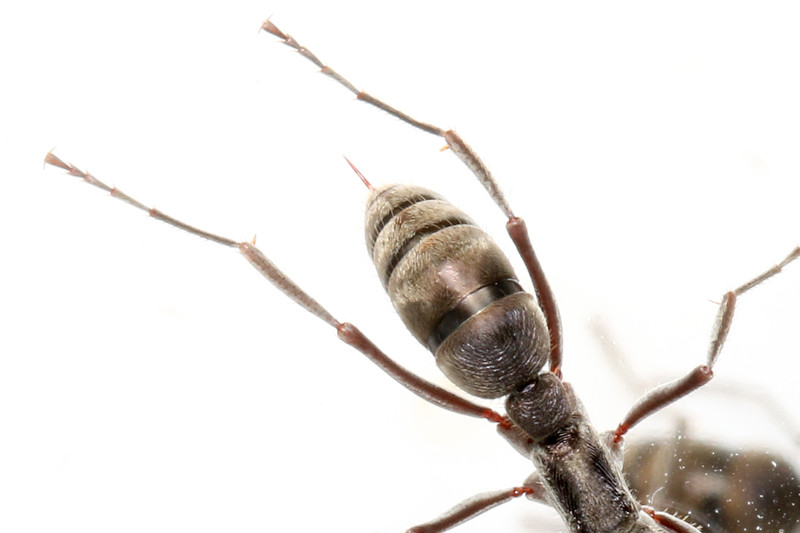 2週間前に羽化した個体で、当時は脚や顎の色が薄く、腹部も小さかったのですが、ずいぶん立派になりました。