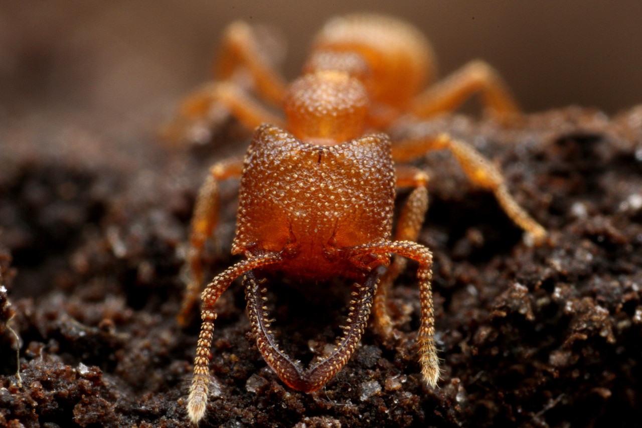 ムカデを捕食するヘラアゴハリアリ