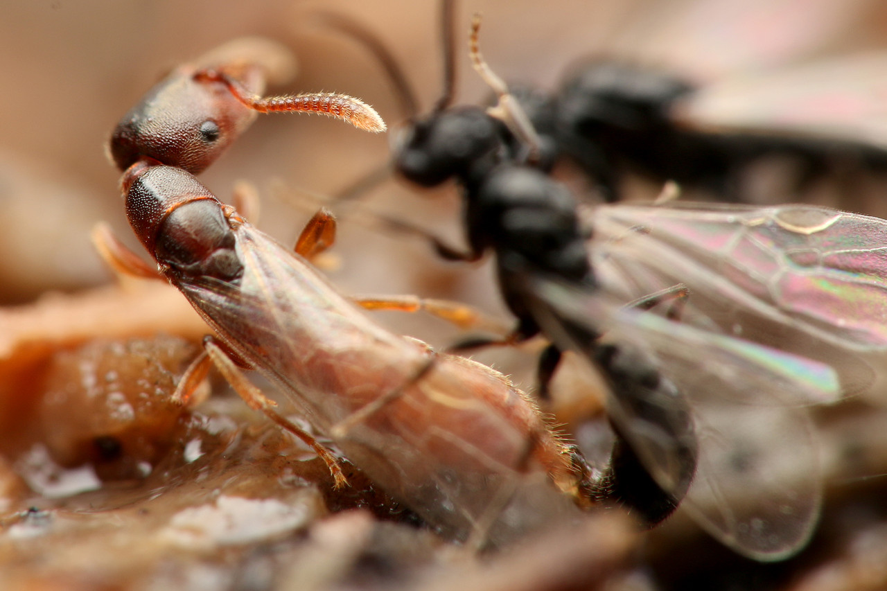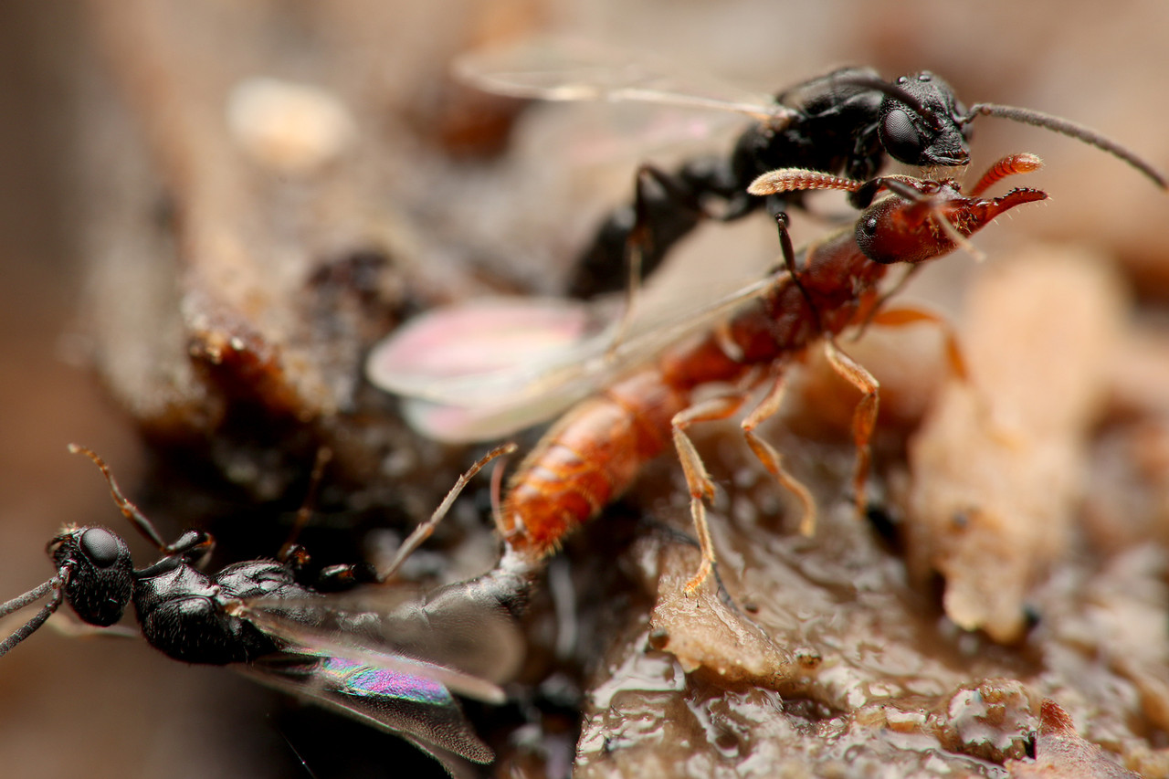 アリに限らず、生息数の少ない小さな生物が、広い森の中でどうやって雌雄が出会うのか時々不思議に思いますが、きっとそれぞれが良いタイミングで出会えるような方法があるのですね。