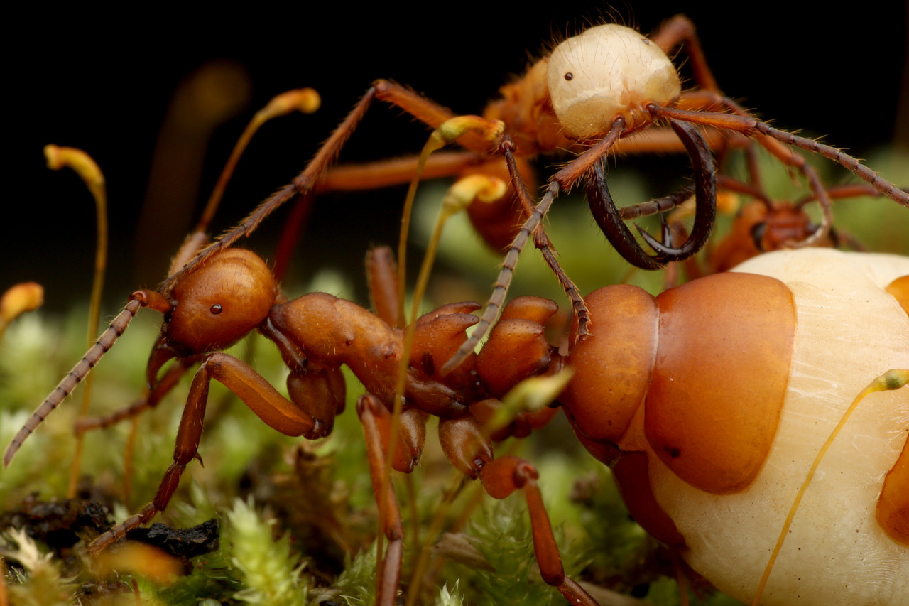 巨大な牙を持つのは、働きアリの中でも兵隊と呼ばれる大型個体です。