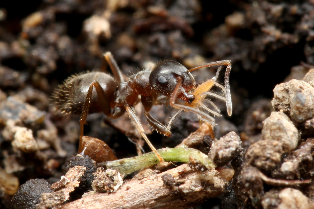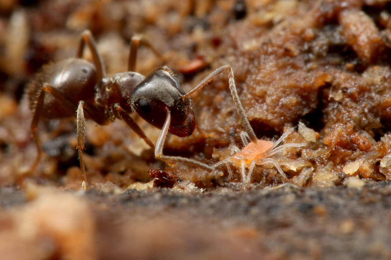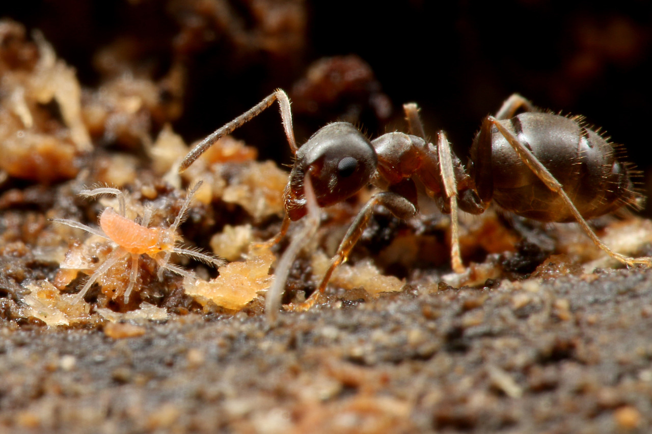 クロオオアリを一緒にしたところ、甘露ではなく雪虫を食べてしまいました!