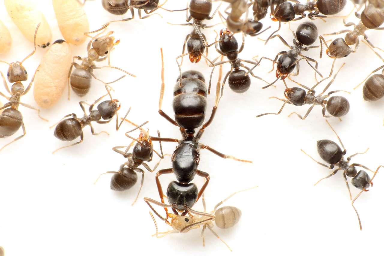 クロクサアリは結婚飛行を終えると、アメイロケアリの巣を乗っ取ります。