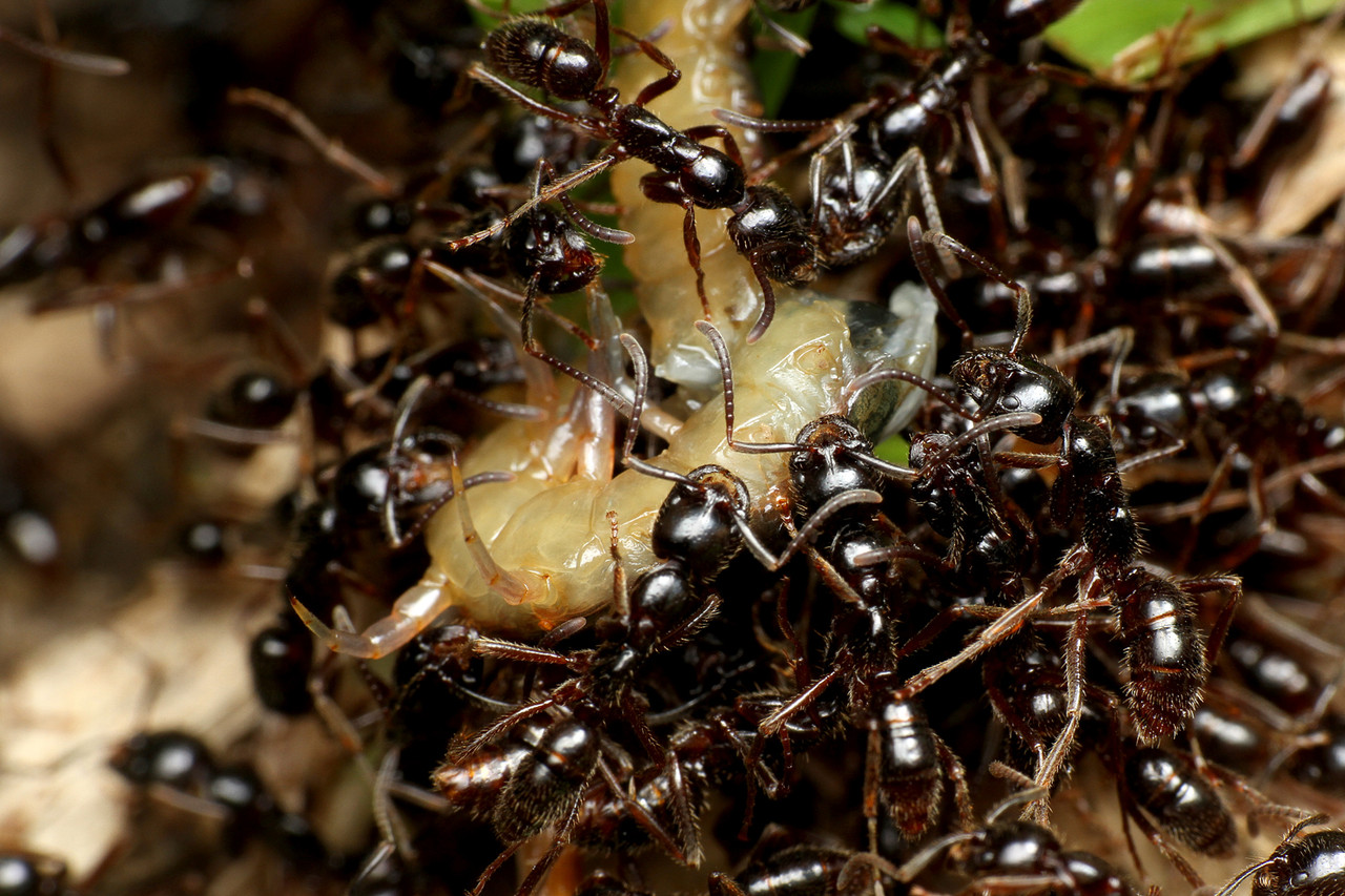 オオハリアリは5mmほどと、それほど大きくはありませんが、集団で獲物を襲う場面は迫力があります。