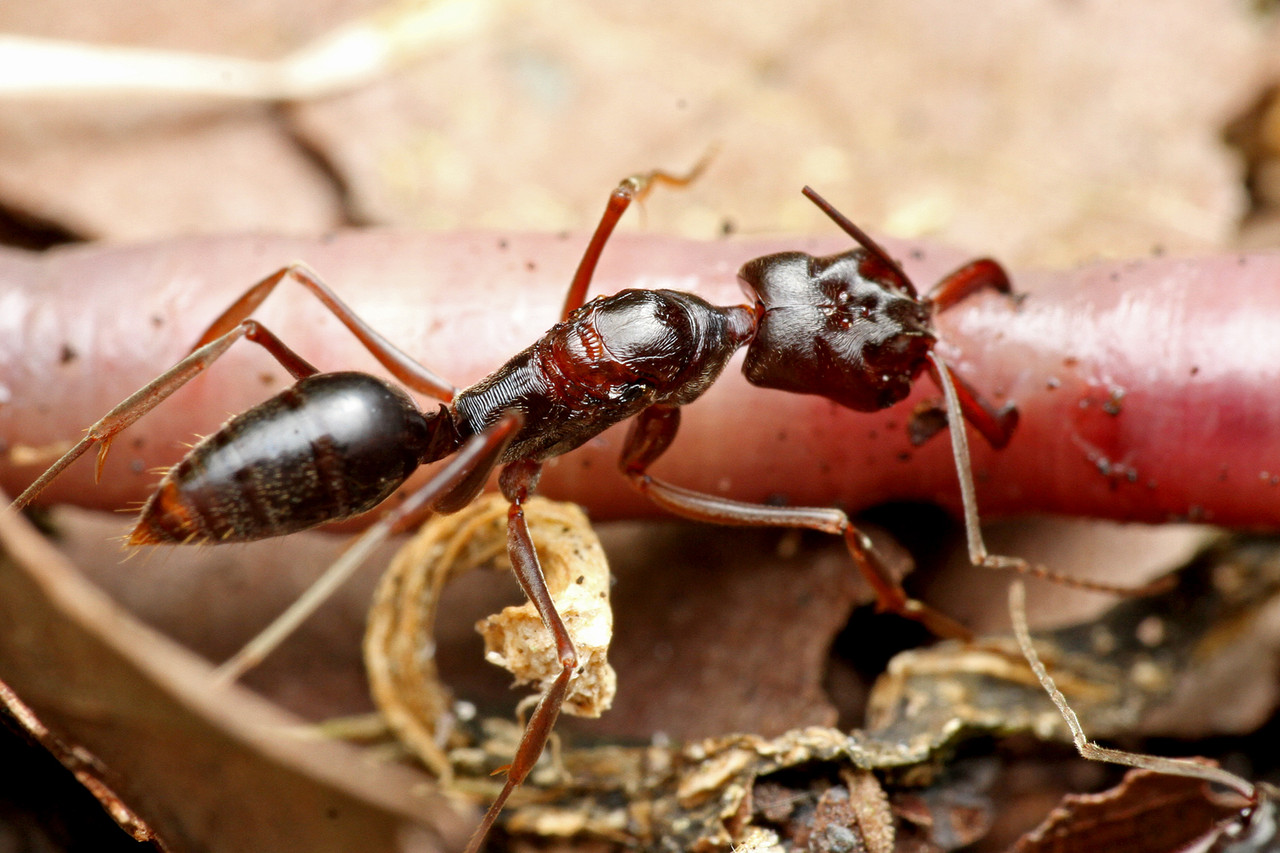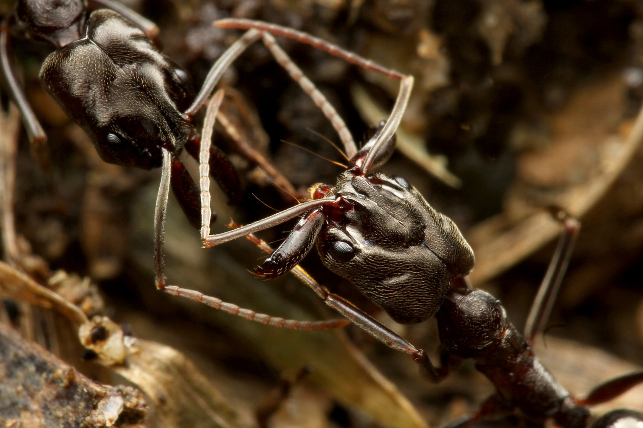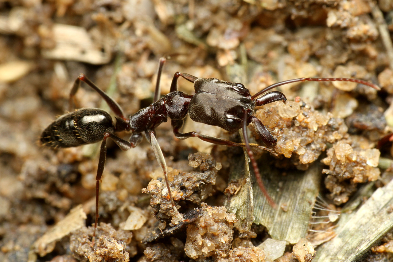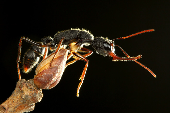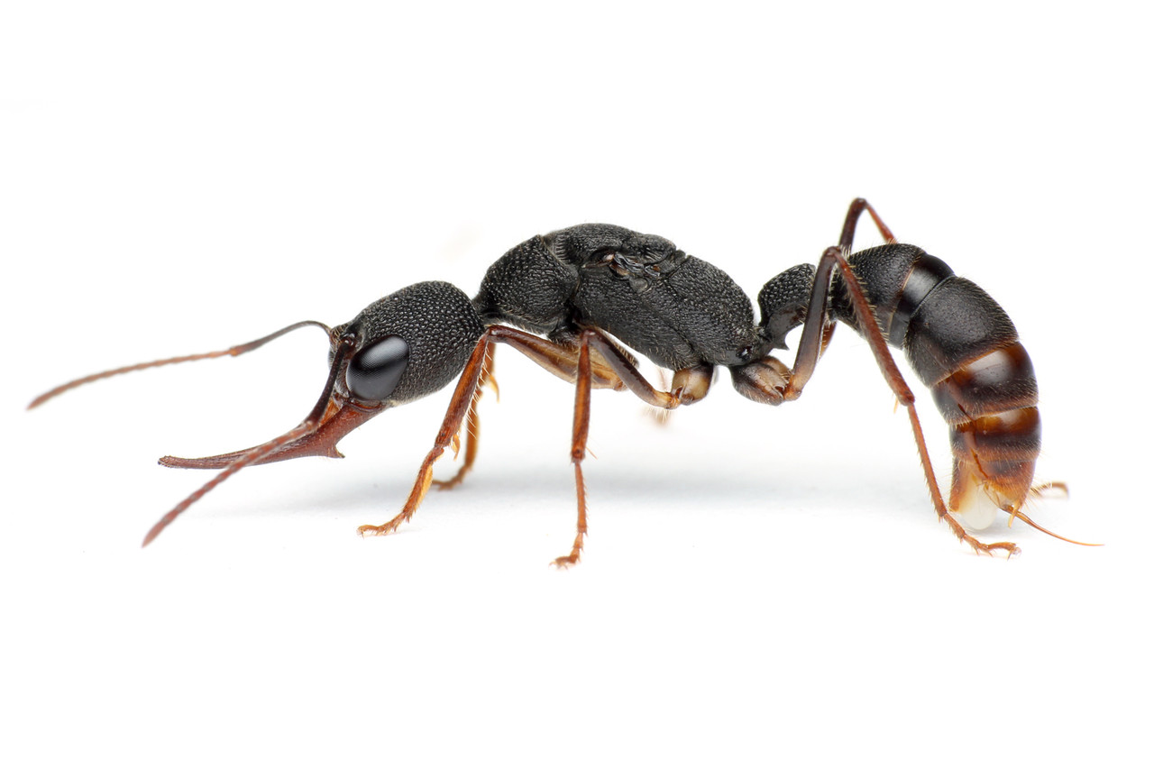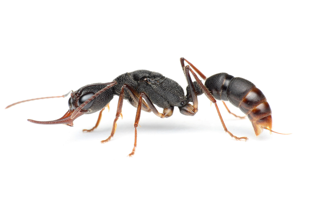 東南アジアに生息するハリアリ亜科のクワガタアリHarpegnathos venator。