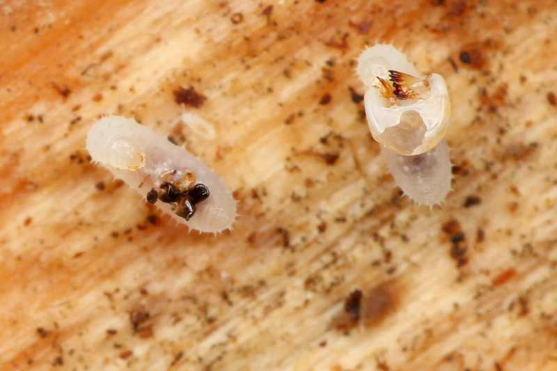 ちなみにシロアリをアリの仲間だと思われている方もいるかと思いますが、シロアリにはサナギという段階がなく(不完全変態)、孵化直後からシロアリの形をしています。