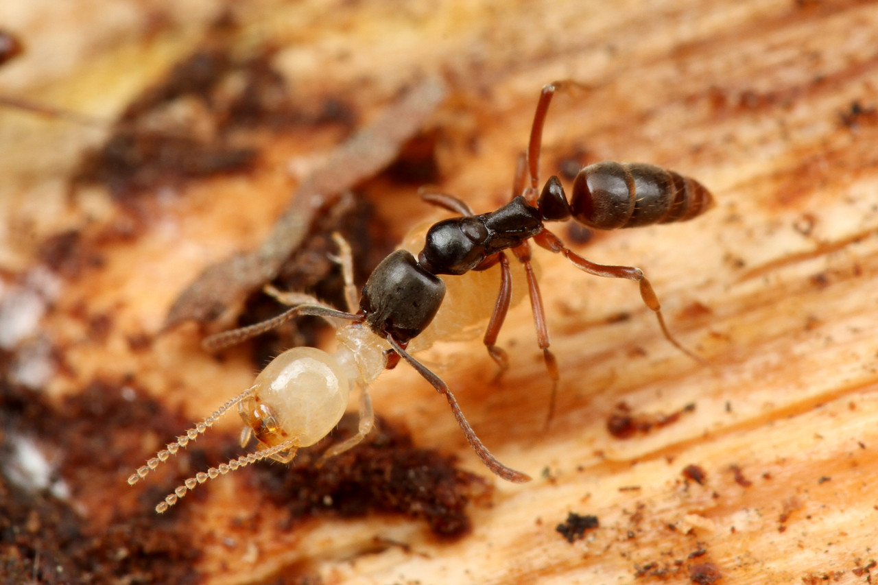 アリの巣の生きもの図鑑のP.144でも紹介されていますが、オオズアリPheidole nodaやツヤオオズアリPheidole megacephalaの巣を調べると、サナギの腹部裏に張り付くヨナグニオオイトダニMacrodinychus yonakuniensisを見つけることができます。
