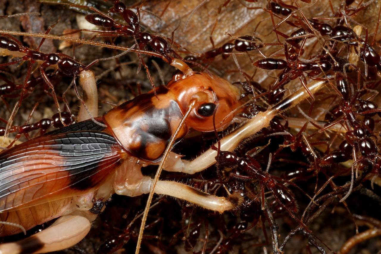 女王アリも働きアリと一緒に狩りに参加していました。