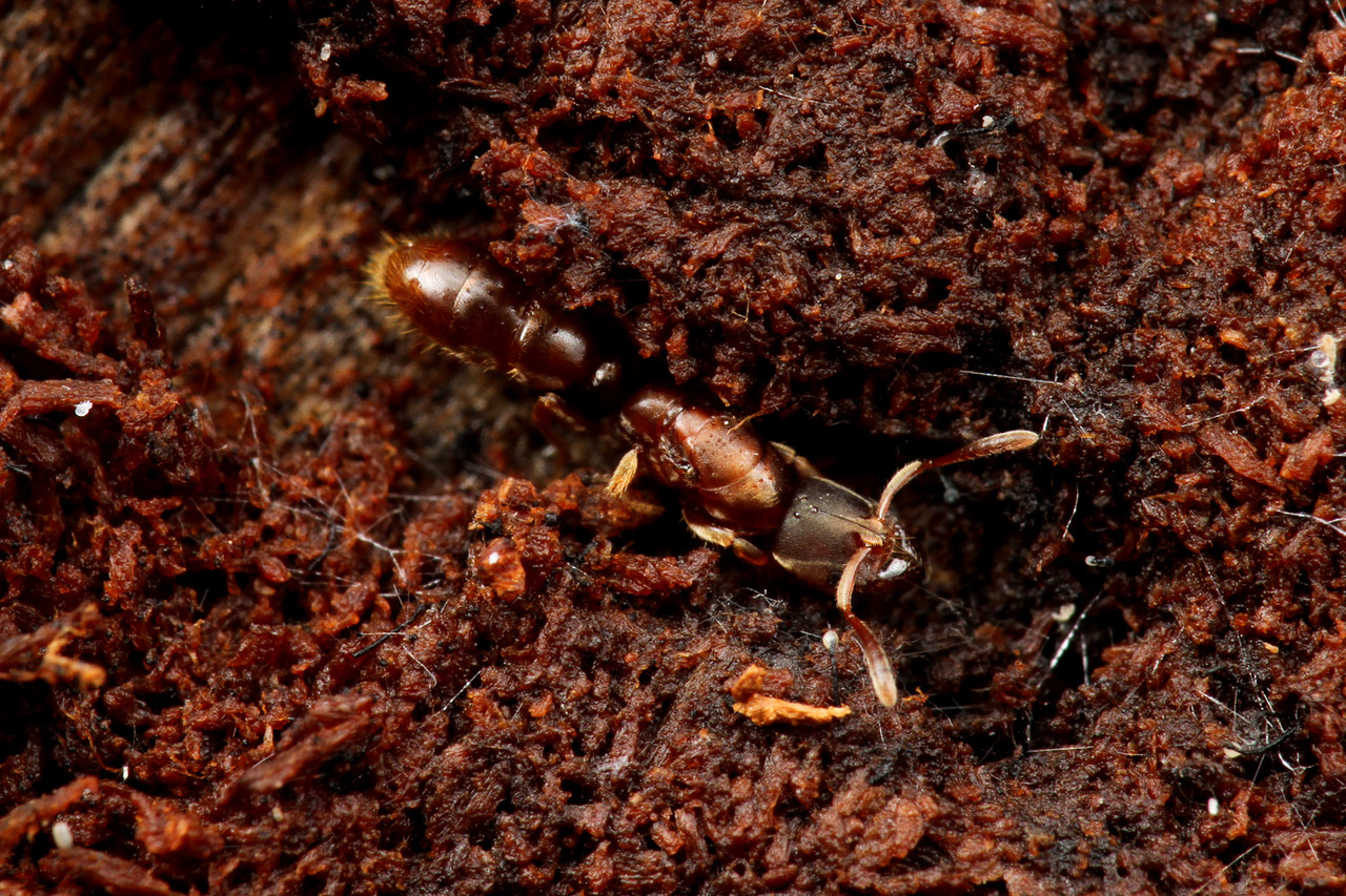 そして、このクワガタアリは、海外の研究所や博物館で10年以上も飼育をされているコロニーがあり、おそらく巣の中でオスと交尾しているのだと思います。