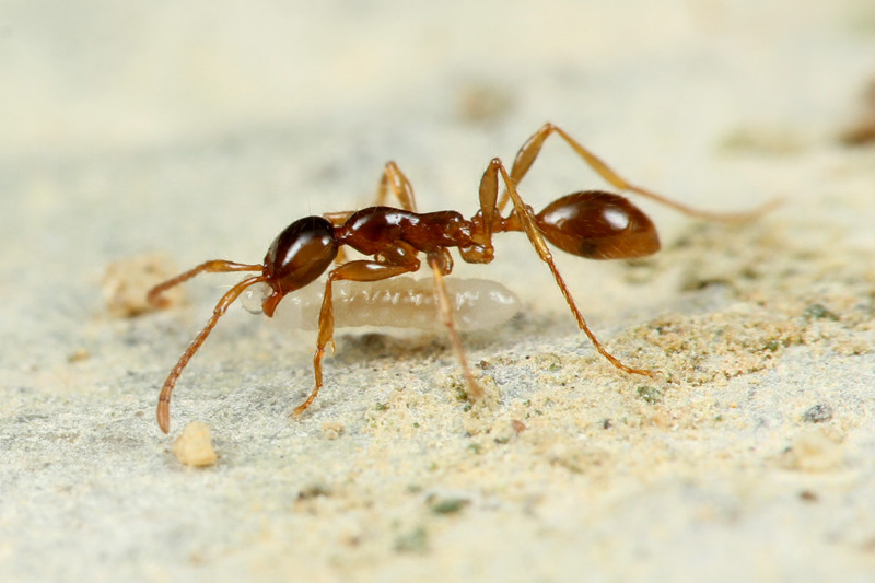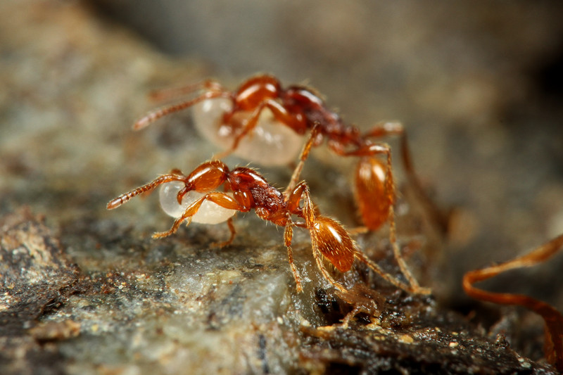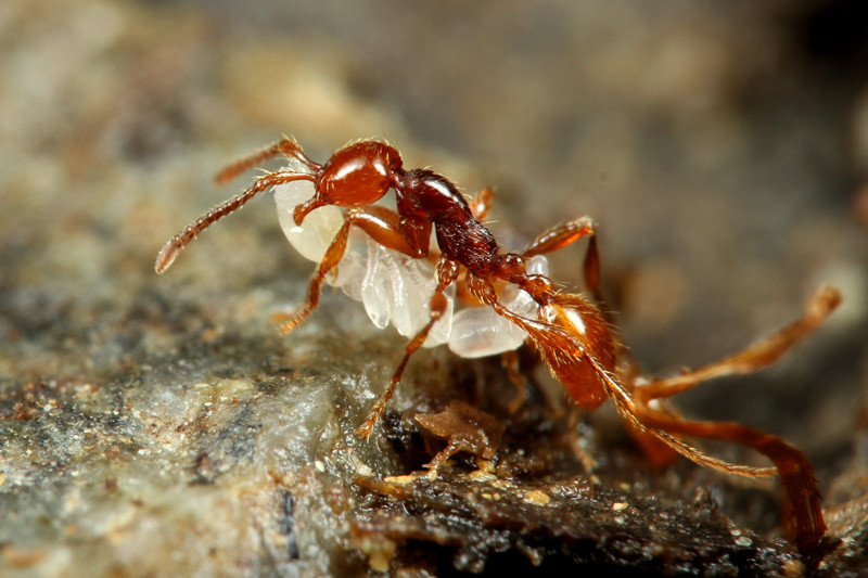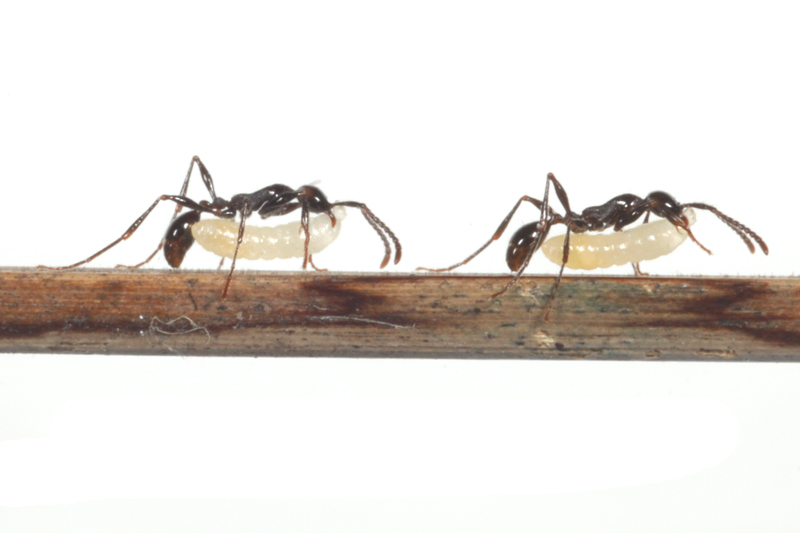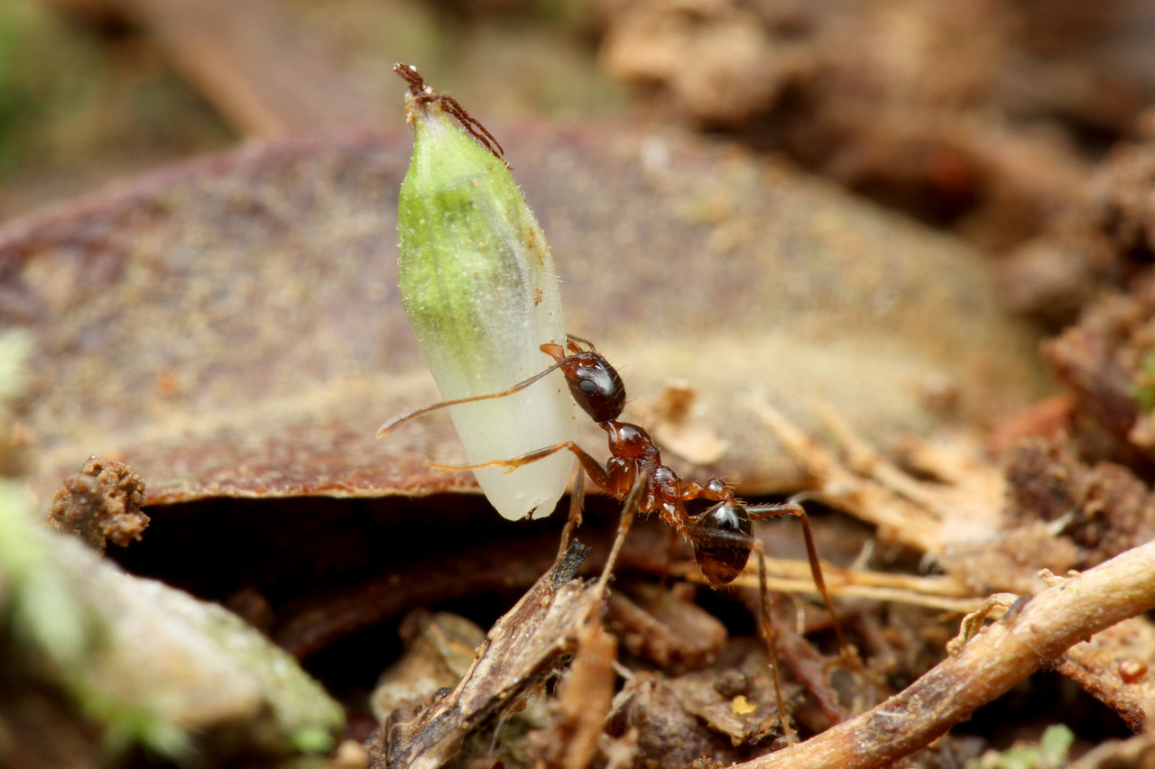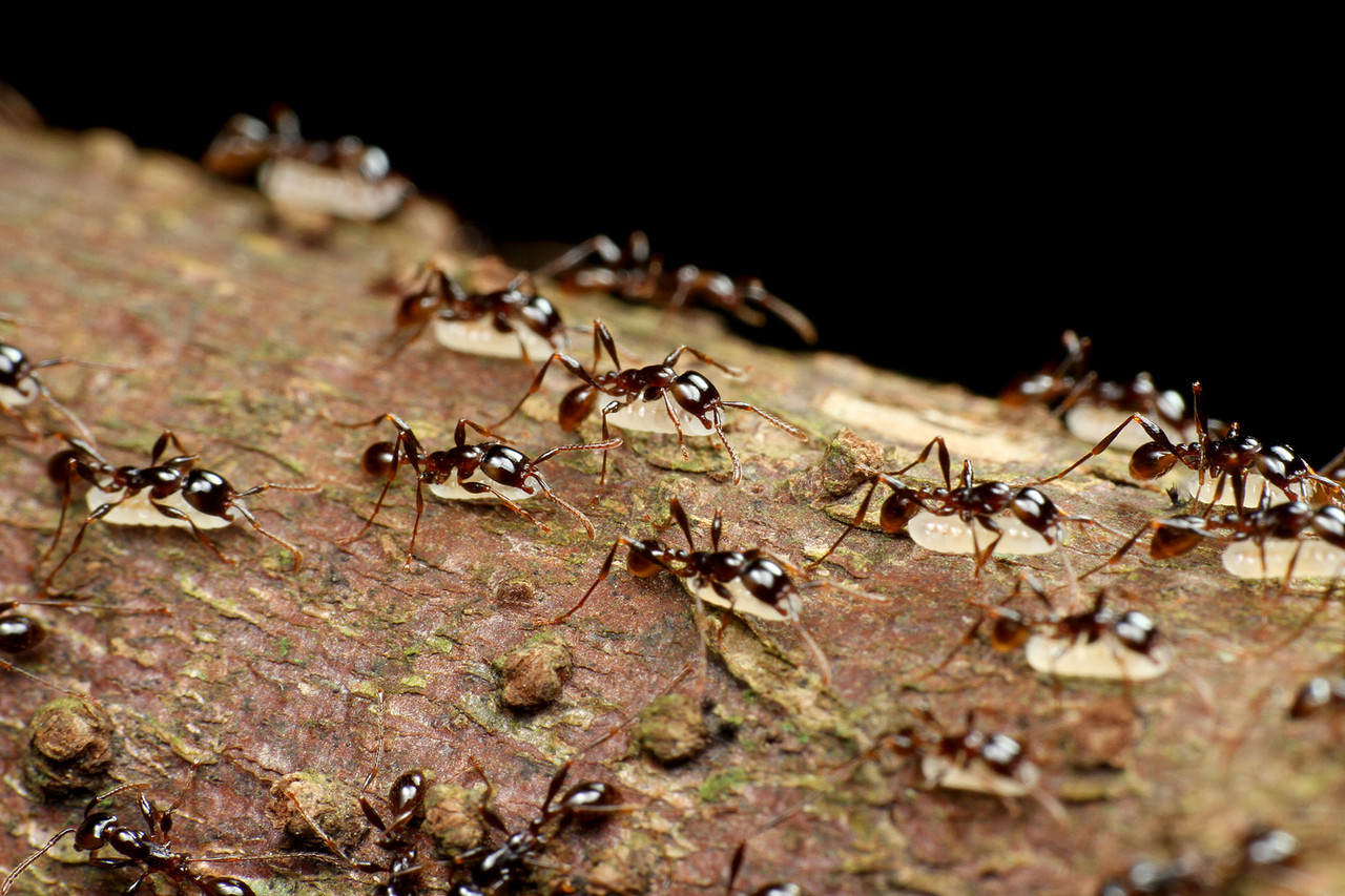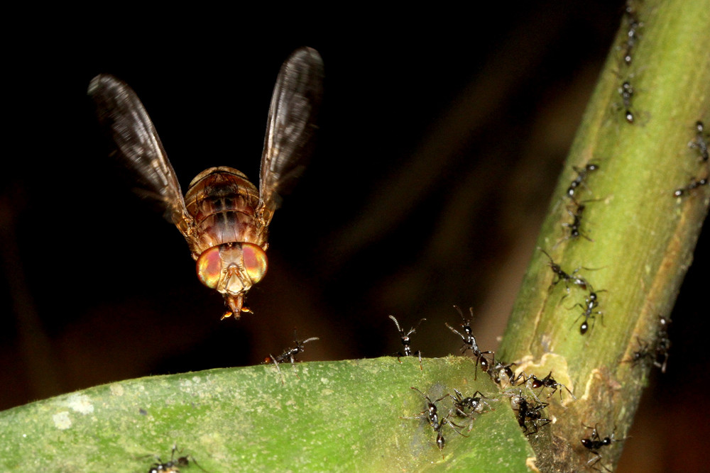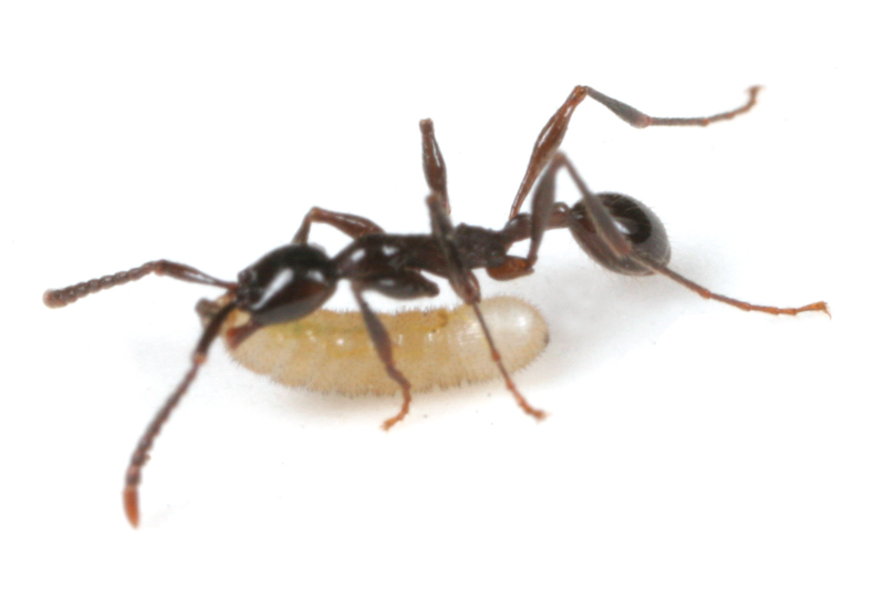ベンガルバエが狙うのはアリが運ぶ幼虫です。