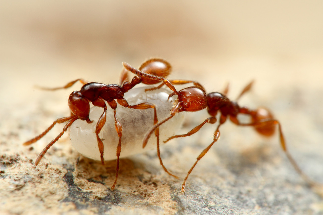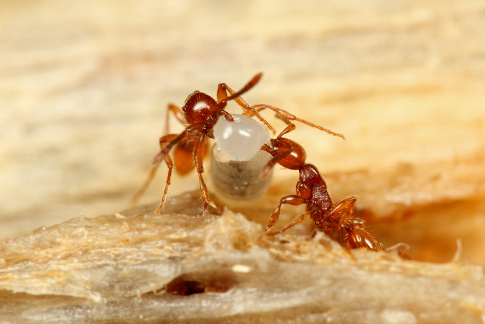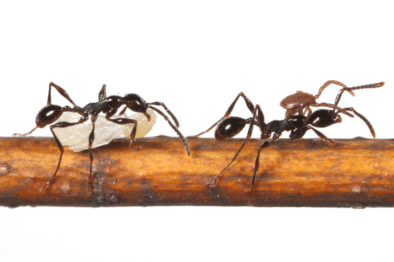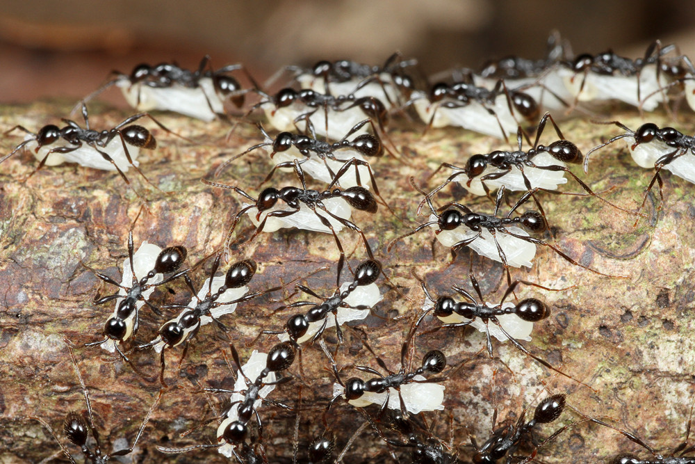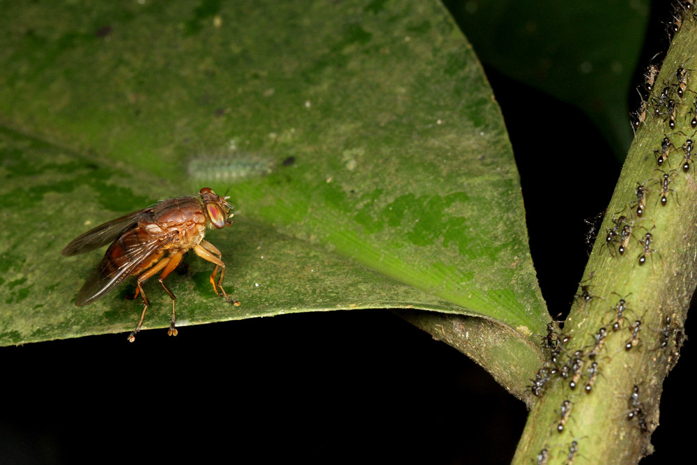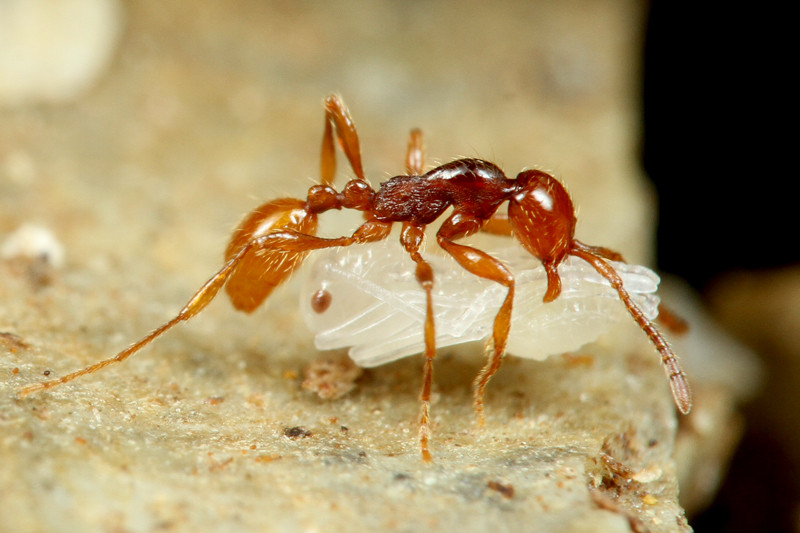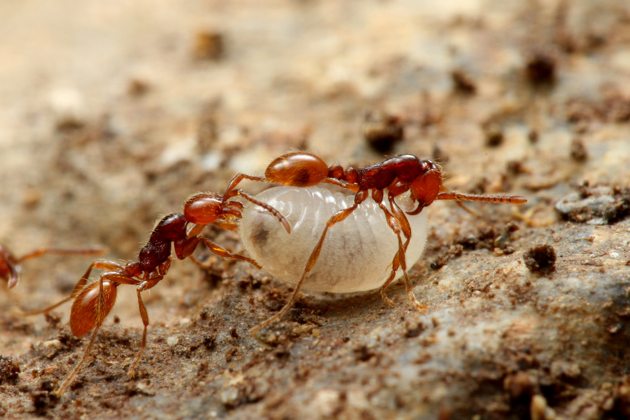ベンガルバエが狙うのはアリが運ぶ幼虫です。