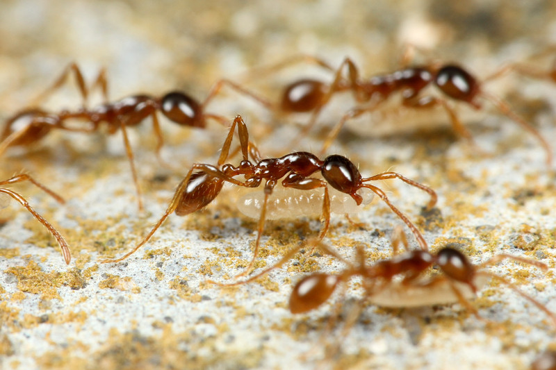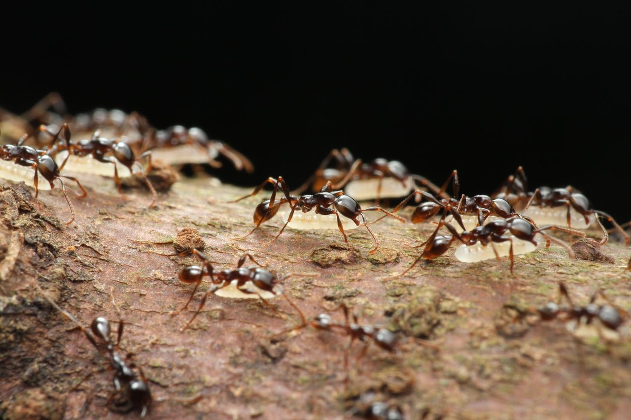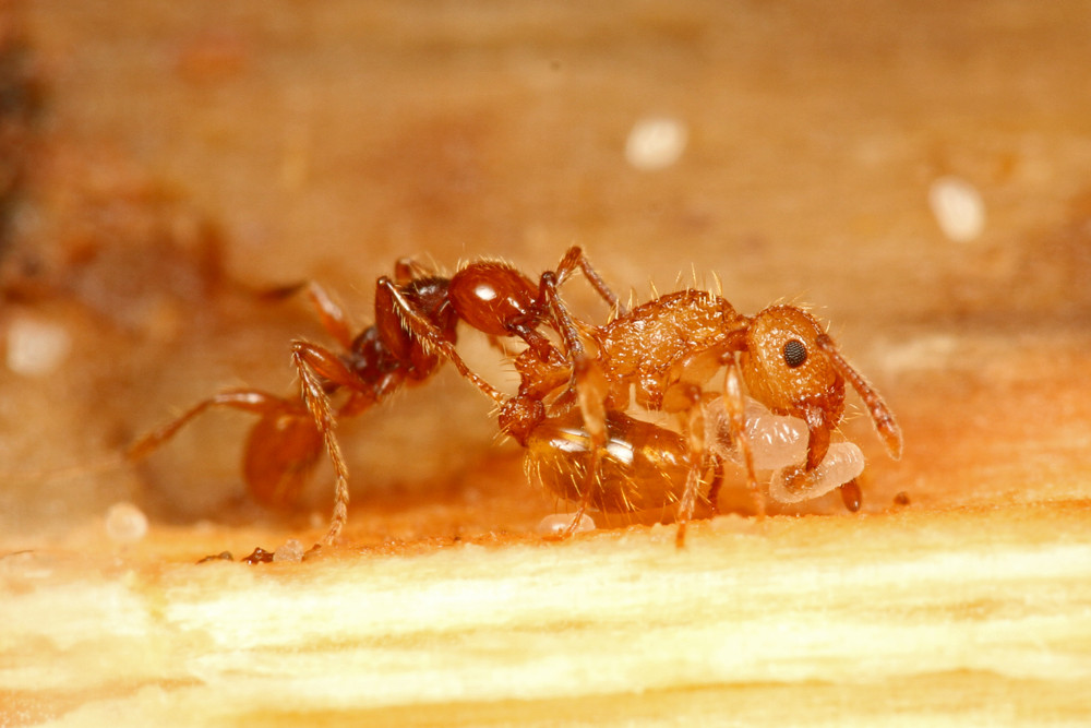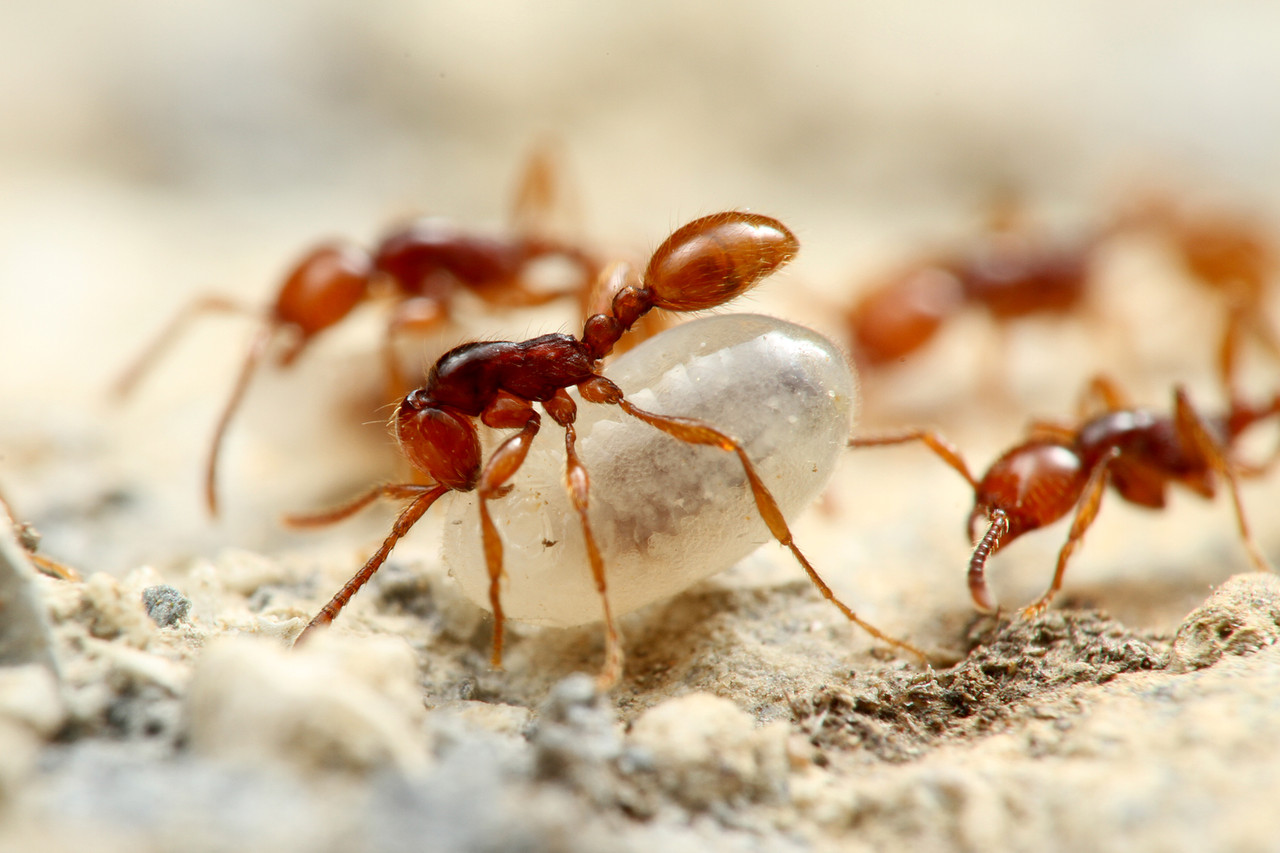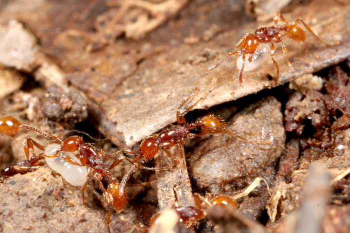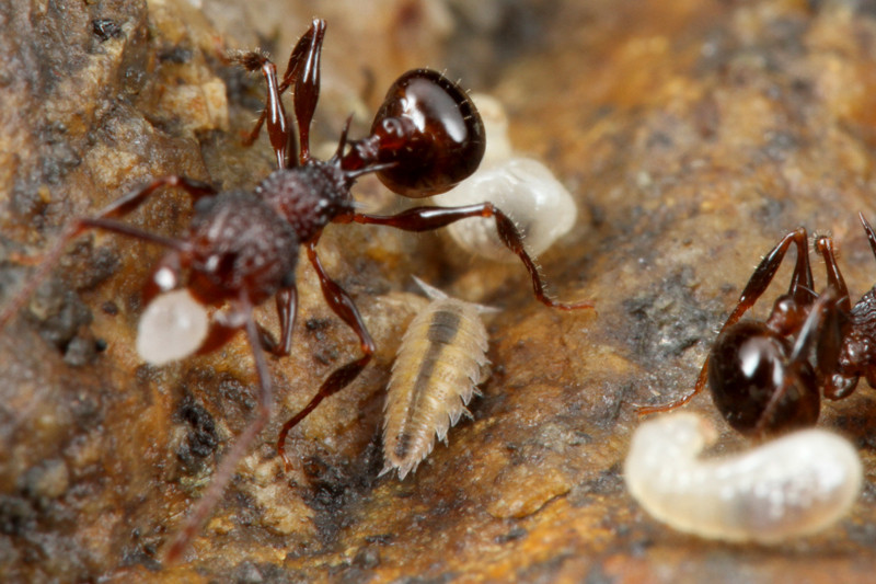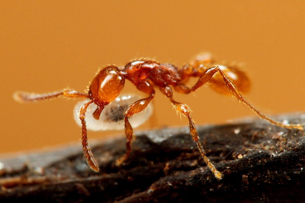 ベンガルバエが狙うのはアリが運ぶ幼虫です。