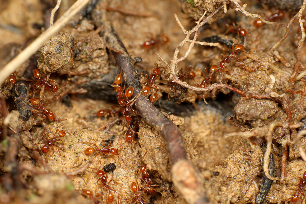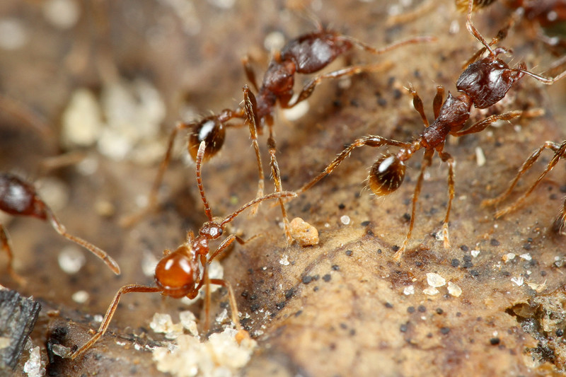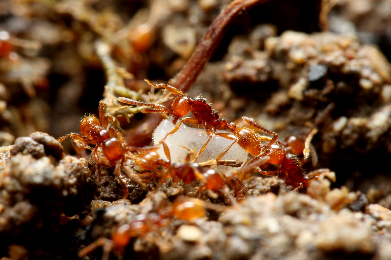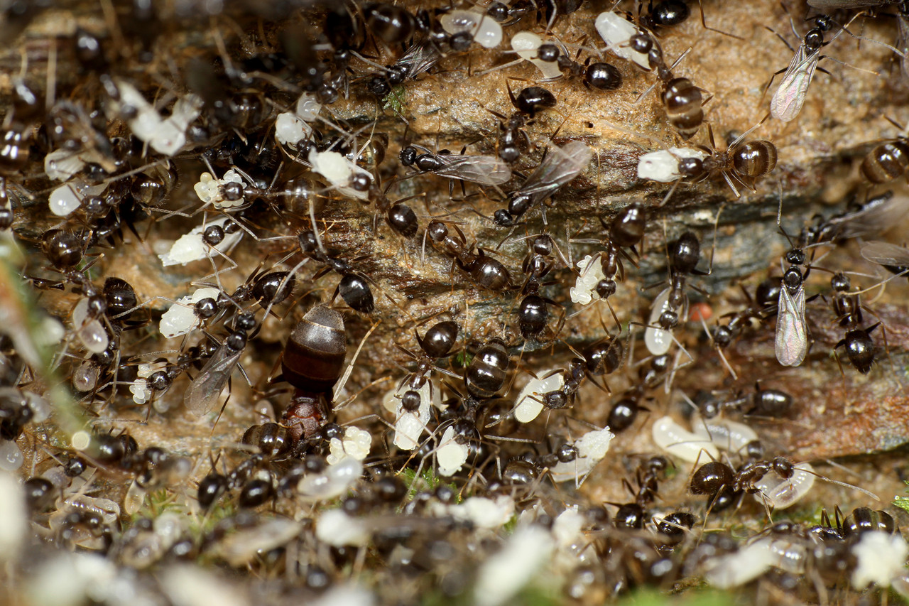 ヒメサスライアリは、繁殖期以外は毎日のように移動しながら暮らすアリで、決まった巣を作りません。