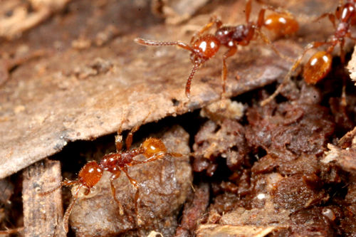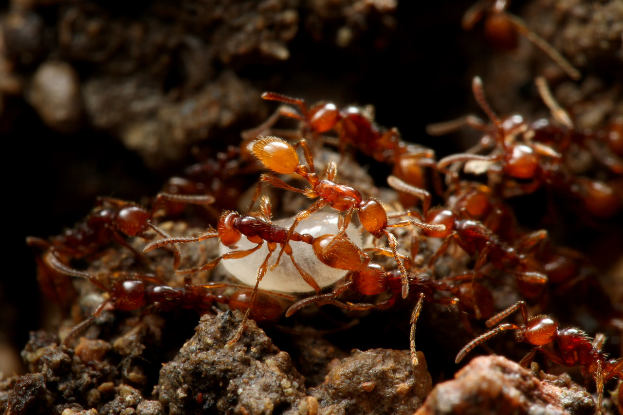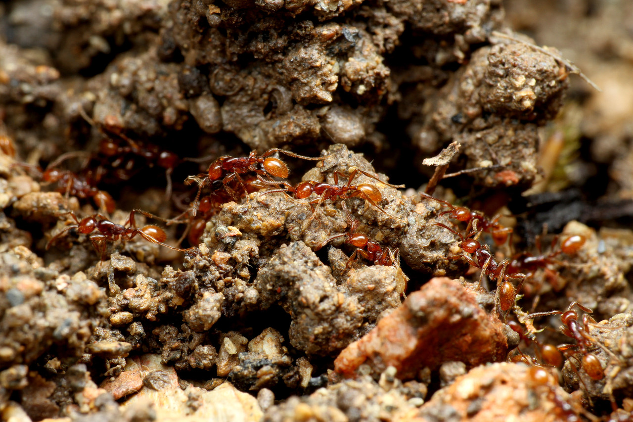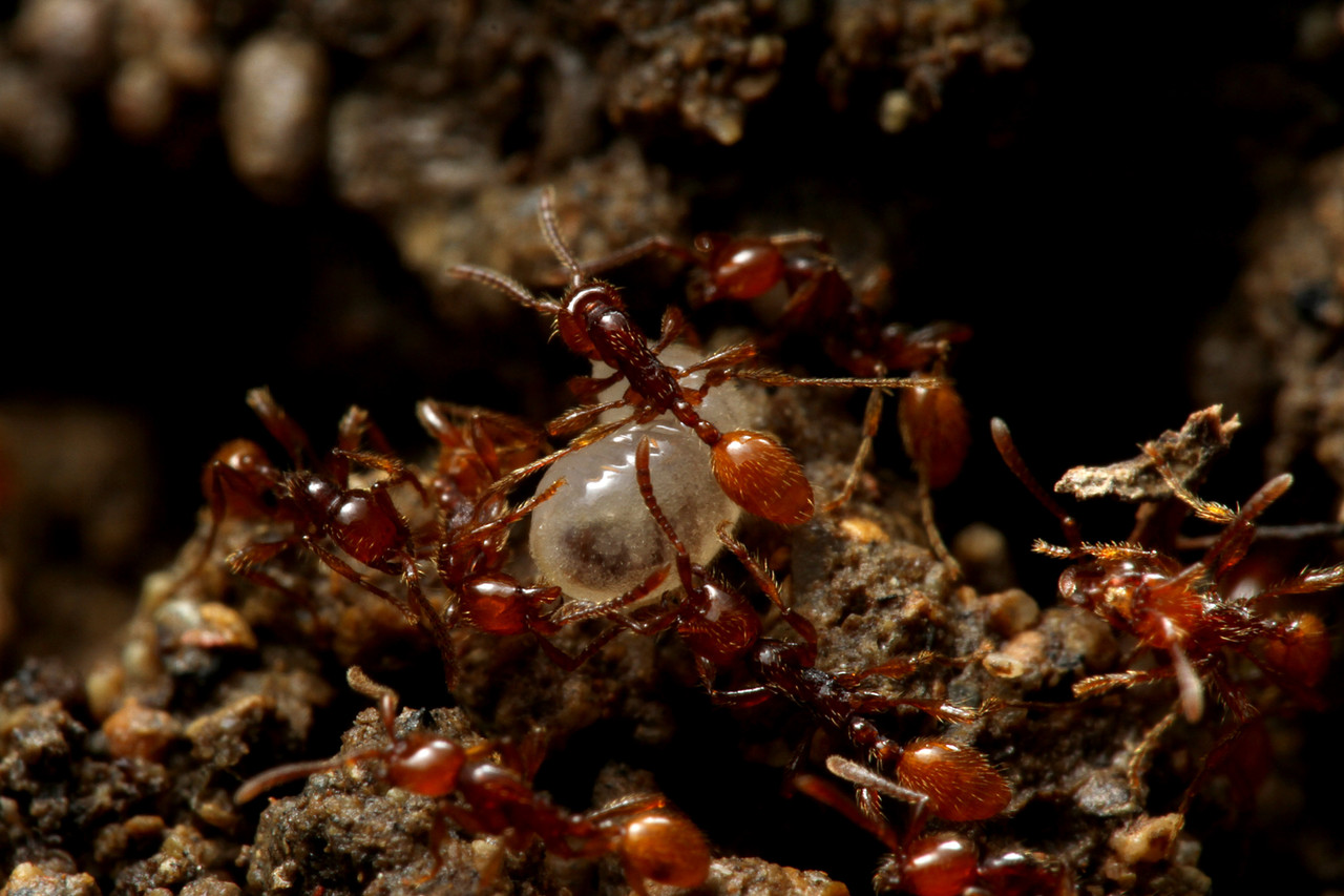 ヒメサスライアリは、繁殖期以外は毎日のように移動しながら暮らすアリで、決まった巣を作りません。