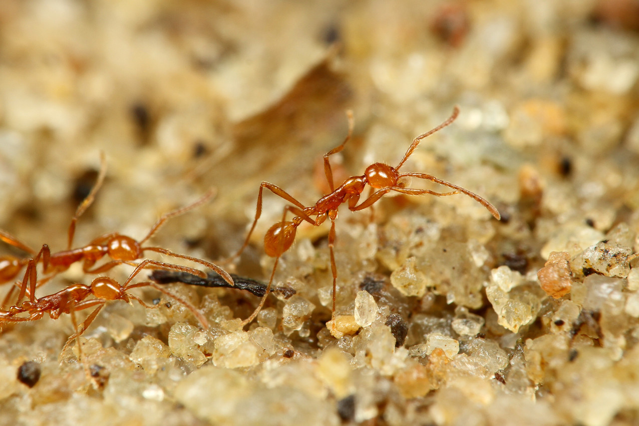 ヒメサスライアリは眼がないとは思えないほど、規則正しく、同じ方向に走っていきます。