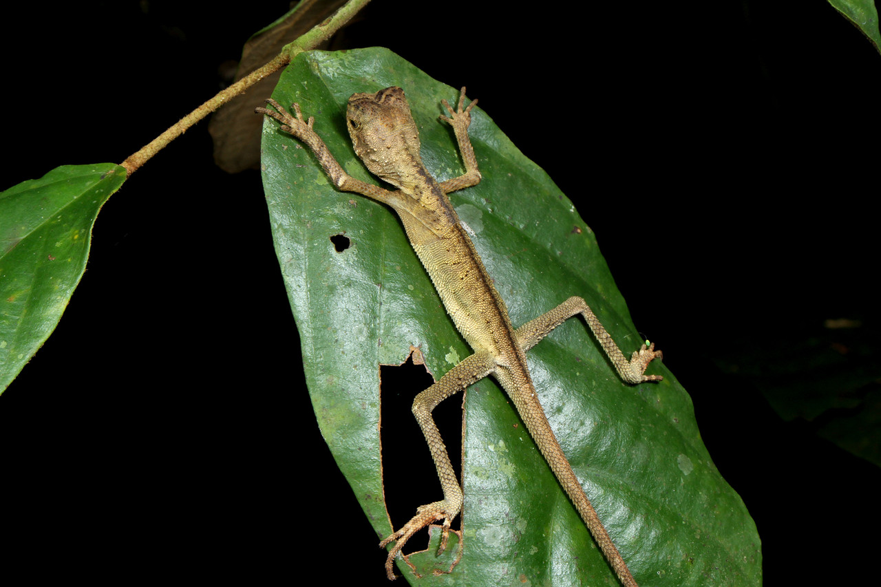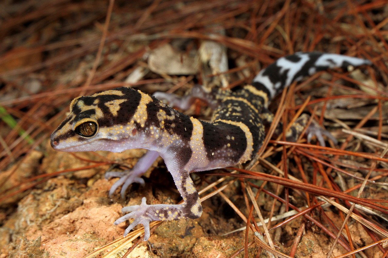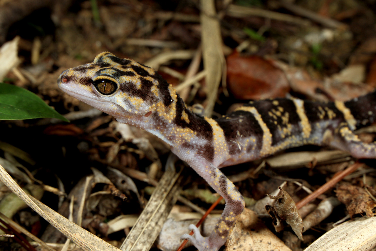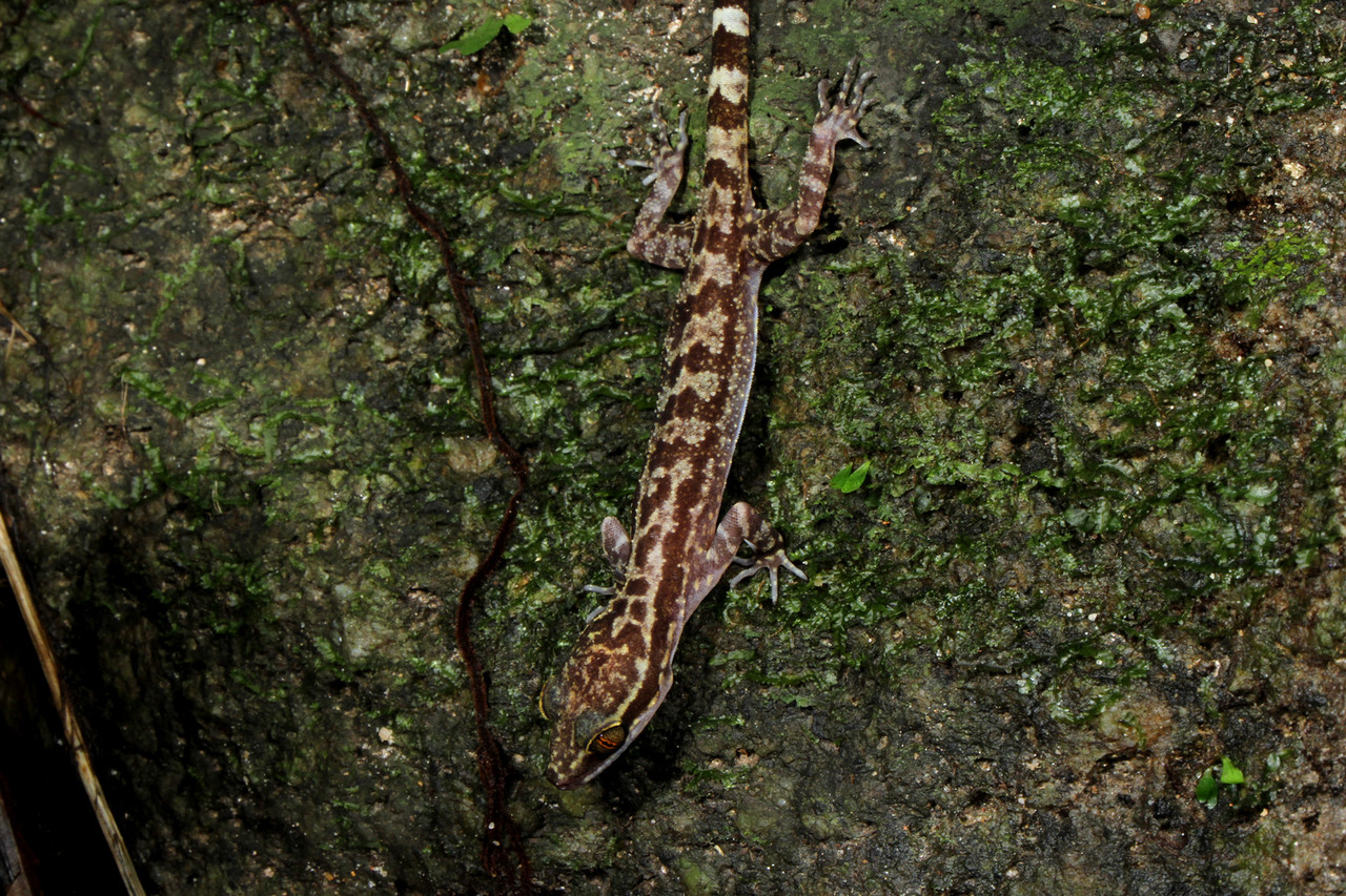 夜行性のイトコホソユビヤモリ Cyrtodactylus consobrinusの幼体。