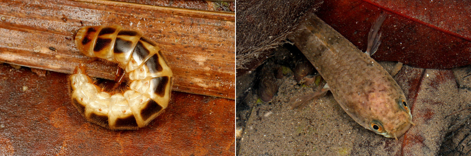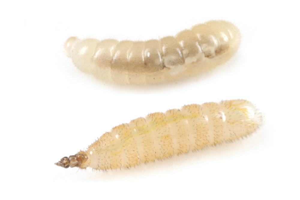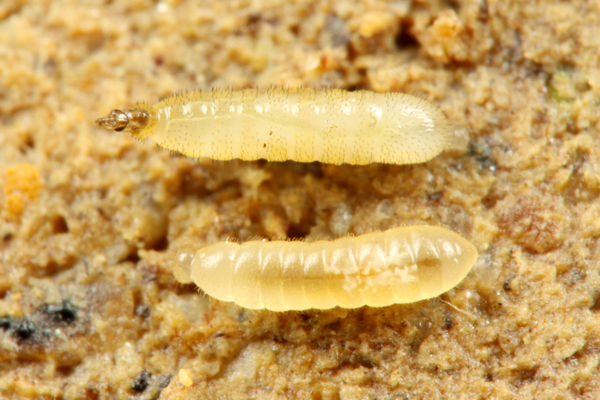 上がアリの幼虫で、下がハエの成虫です。