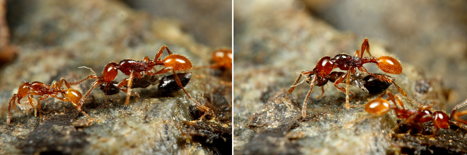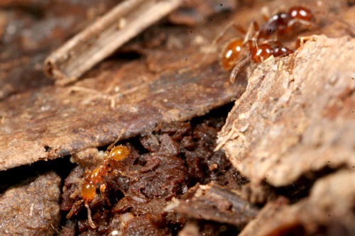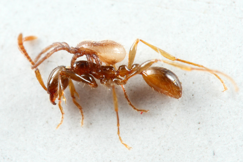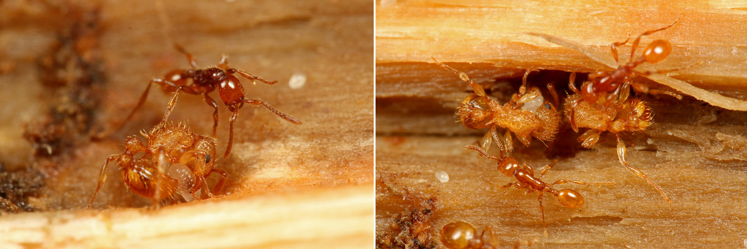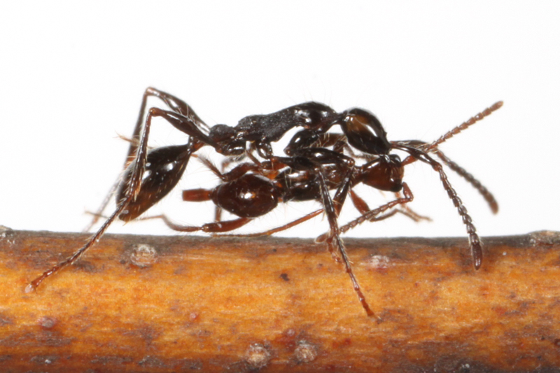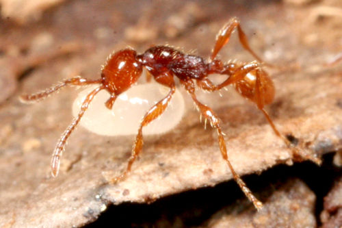 同じ地域でアシナガキアリの巣で、これより一回り小さな種類も見つけています。