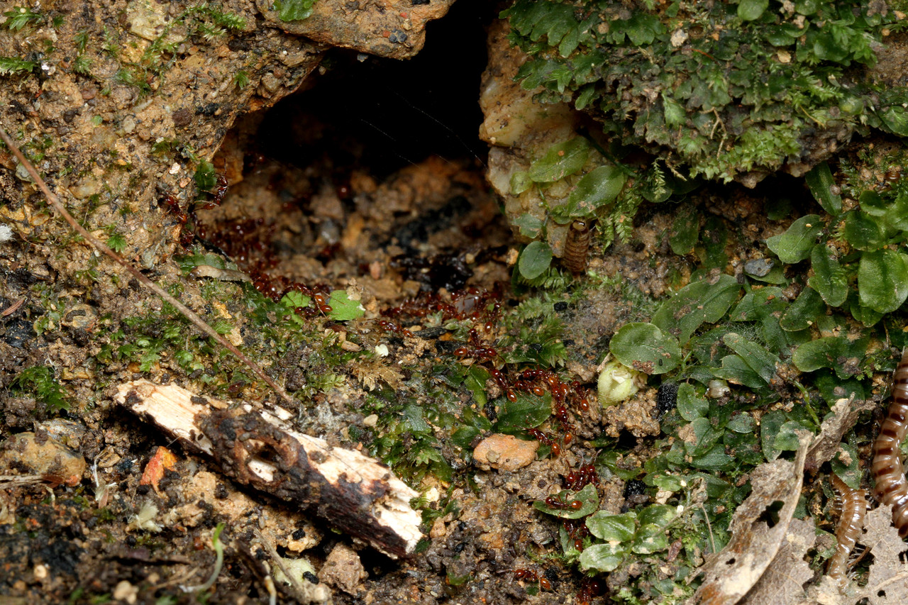 ヒメサスライアリのビバークや引っ越し行列から、まだ誰も見たことのない女王アリや好蟻性生物を見つけ出すのが沖縄での最大の目標でもあります。