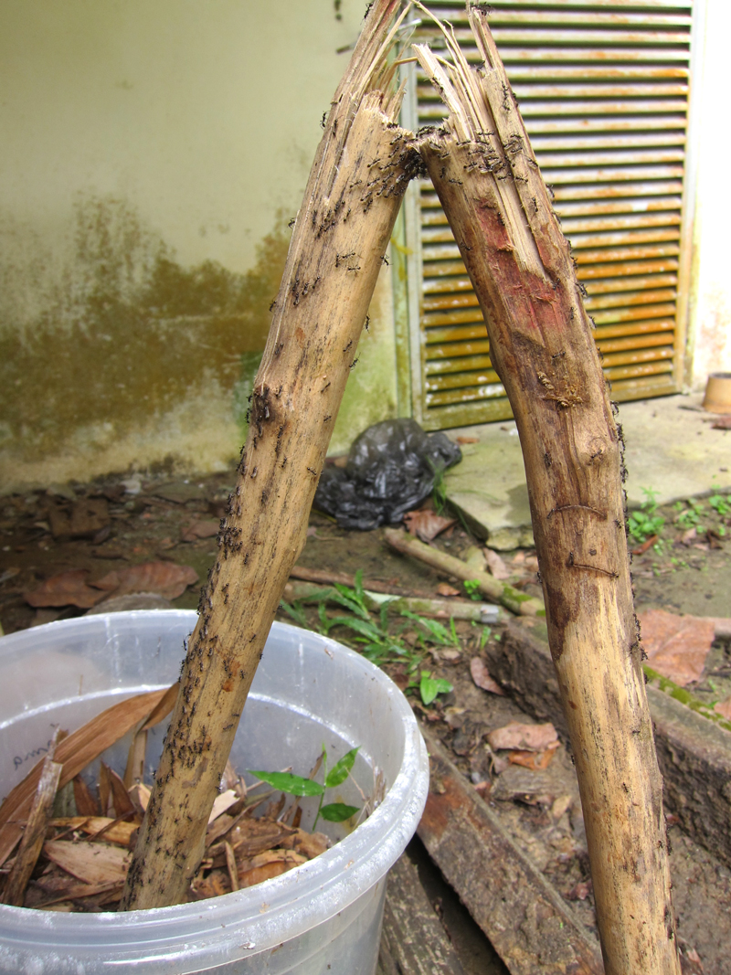 そして、また宿に戻り丸山さんにそのことを伝えたところ、採集道具の準備を始めて、今回は引っ越しを待つのではなく、コロニーを丸ごと採集することになりました。