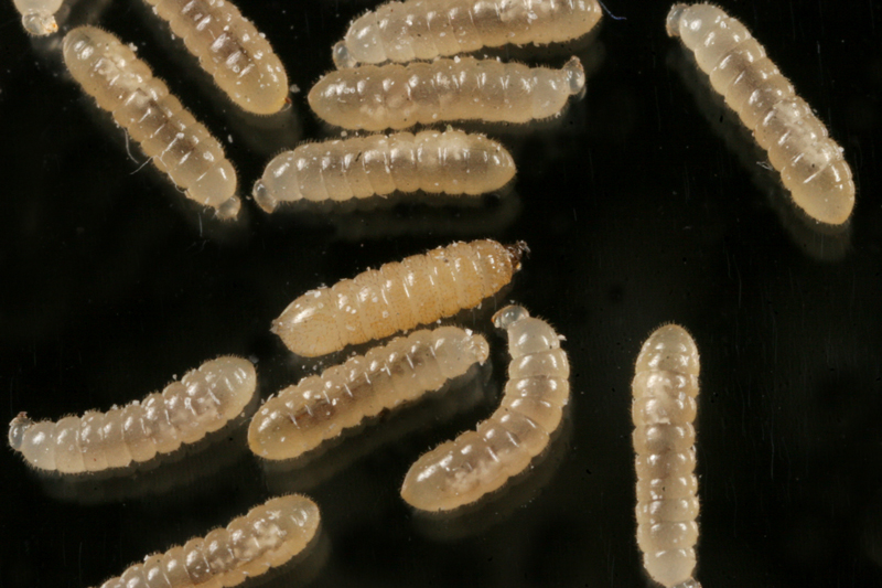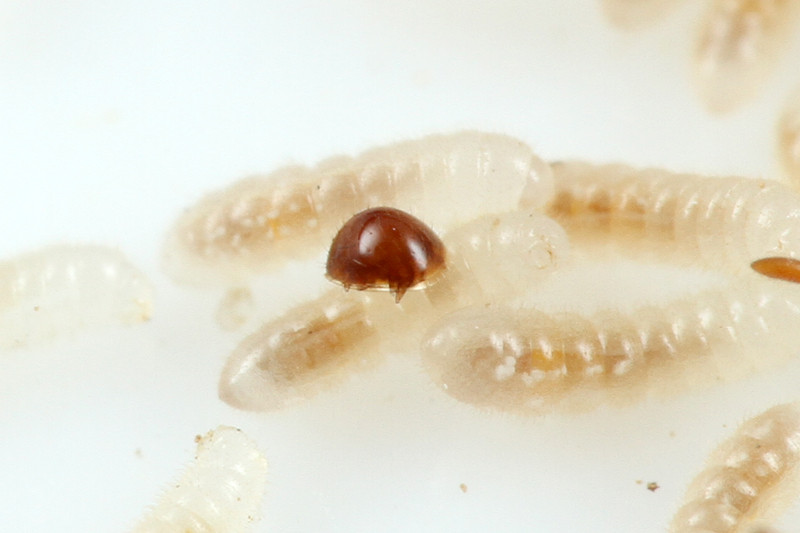 ここまで拡大すると、アリの幼虫にそっくりなハエの顔が分かりますね。