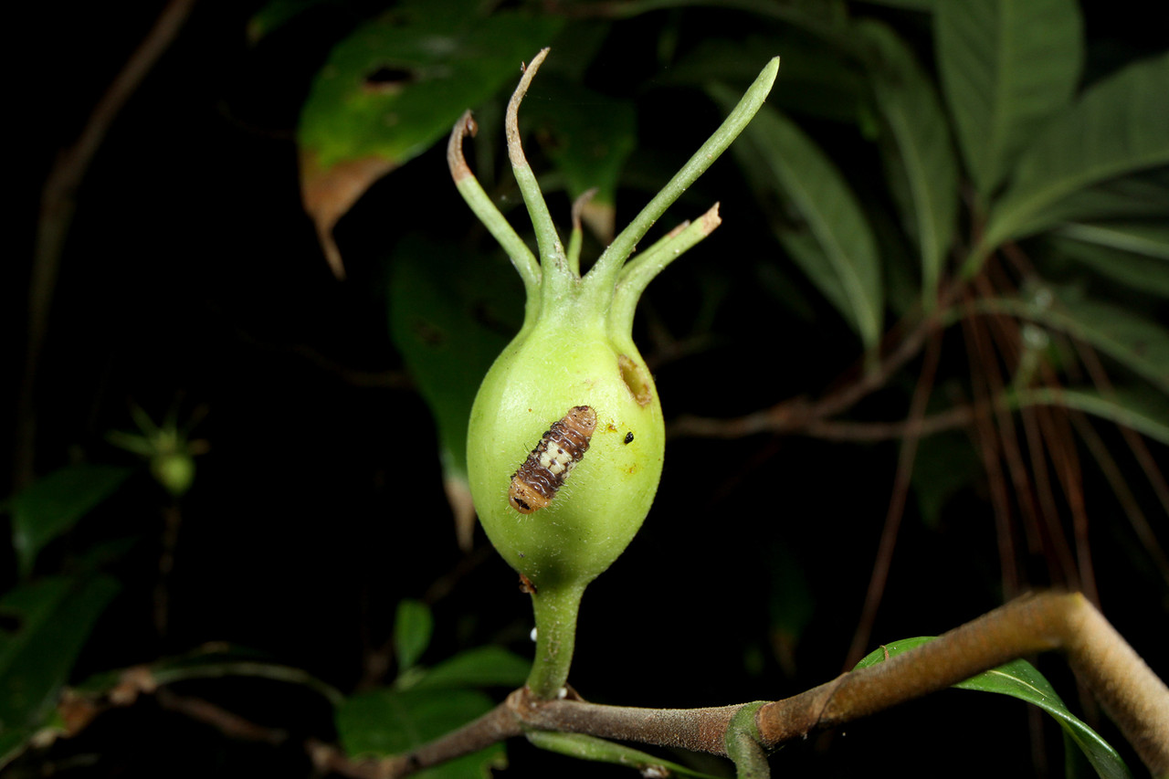 口を刺して体液を吸っているようで、たった数秒で幼虫はシワシワになってポイっと捨てられます。