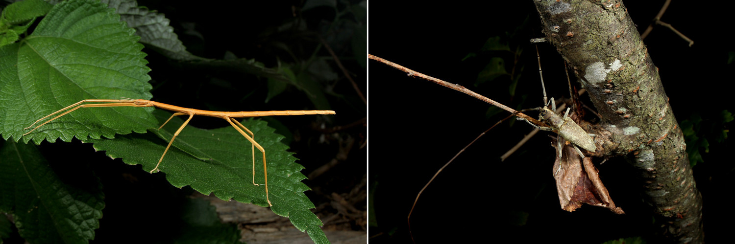 普段は腹部を持ち上げて歩いていますが、腹部を伸ばすと、長い脚、腰のくびれ、触覚や腹部までもがヒメサスライアリにそっくりなのです。
