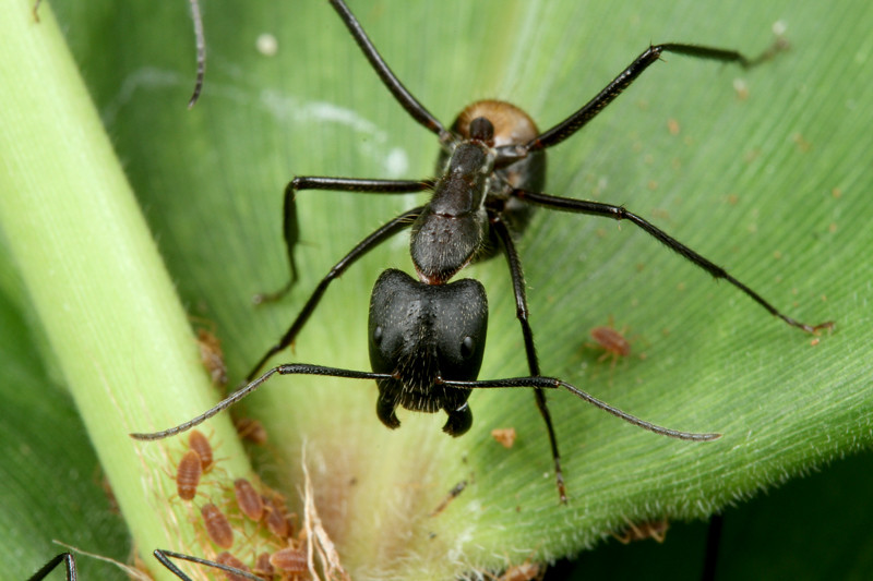 前脚でアリを操縦しているようにも見えます。