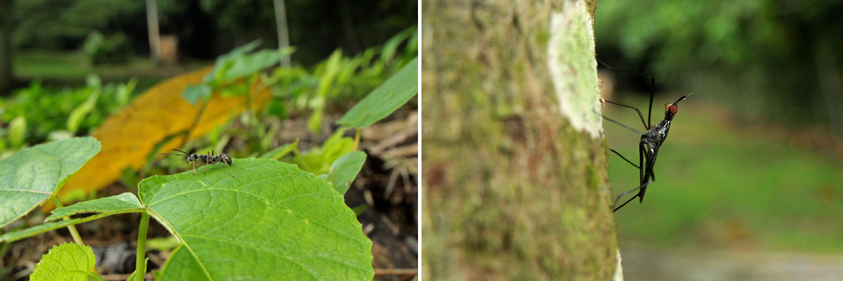 午前の採集を終えて宿に帰る途中、林道に黒いアリの行列を見つけることができました。