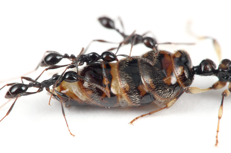 運ばれている最中のハネカクシは、運ばれるアリと同じように、まったく動きません。