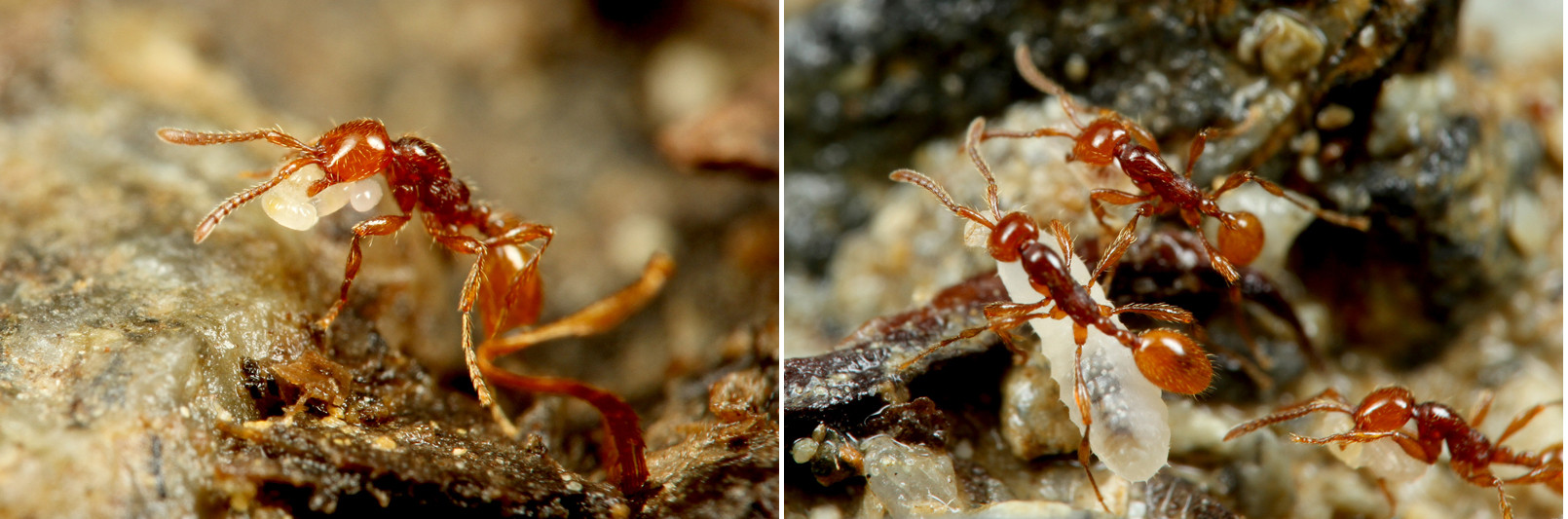 アリは仲間をアゴで咥えて運ぶこともあり、この時の咥え方も種類によって決まっています。