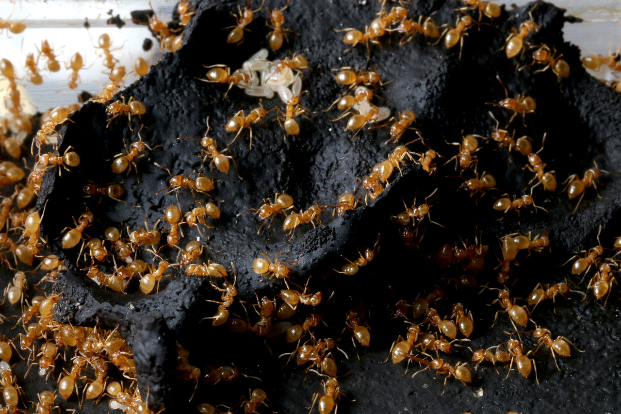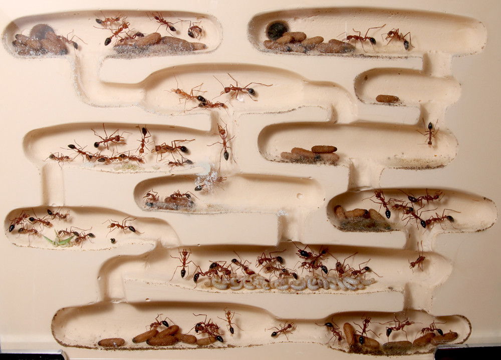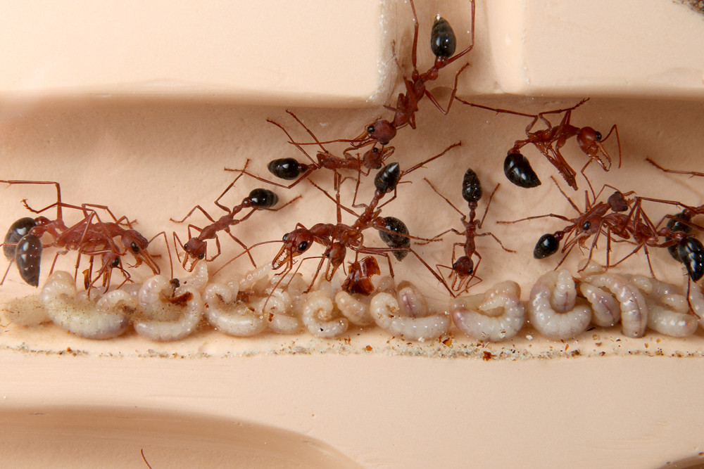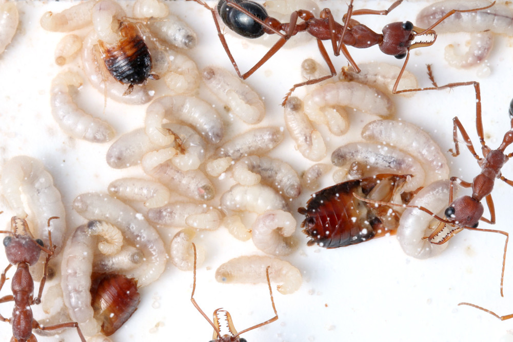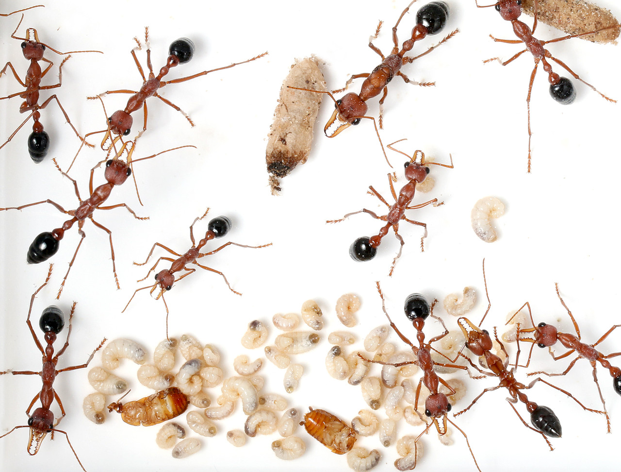働きアリや幼虫の多いブルドックアリのコロニー。