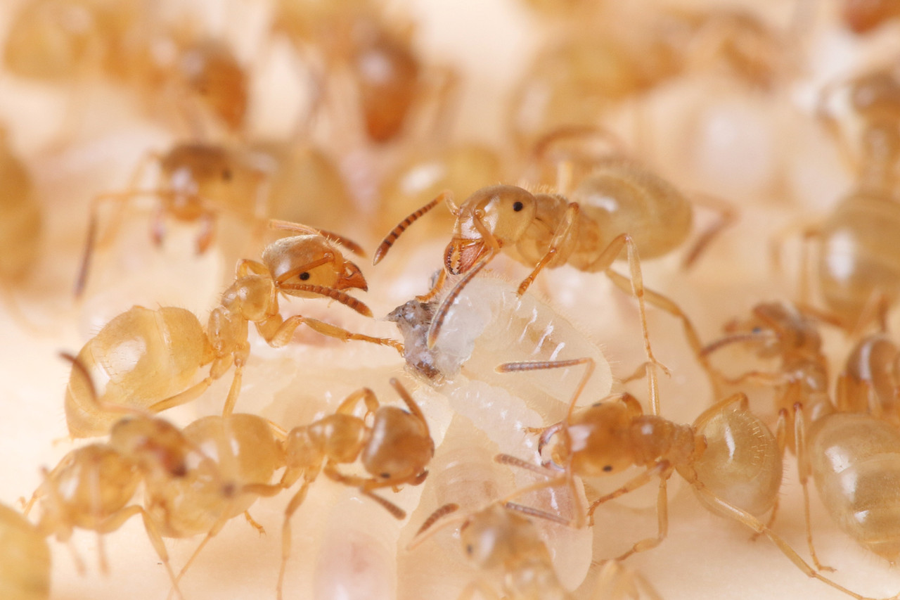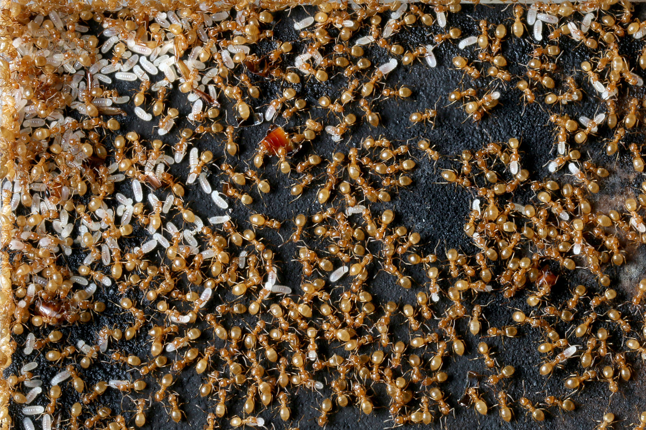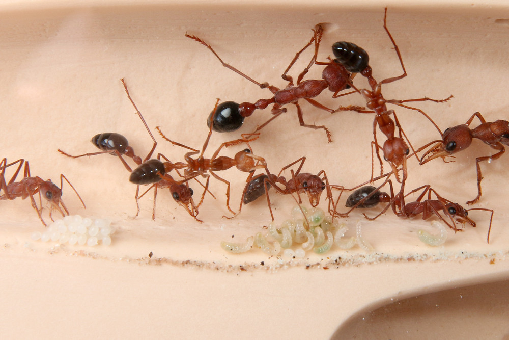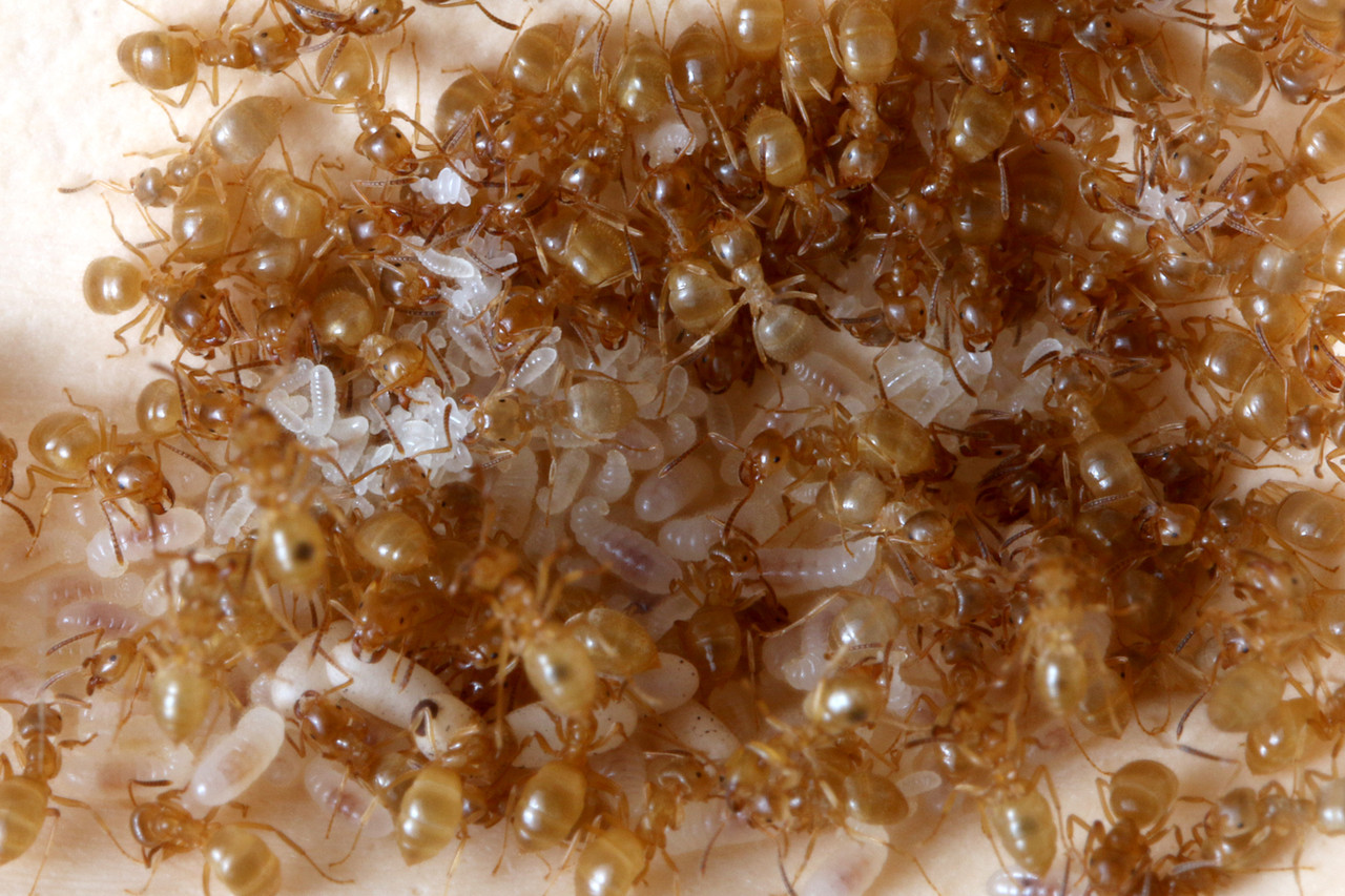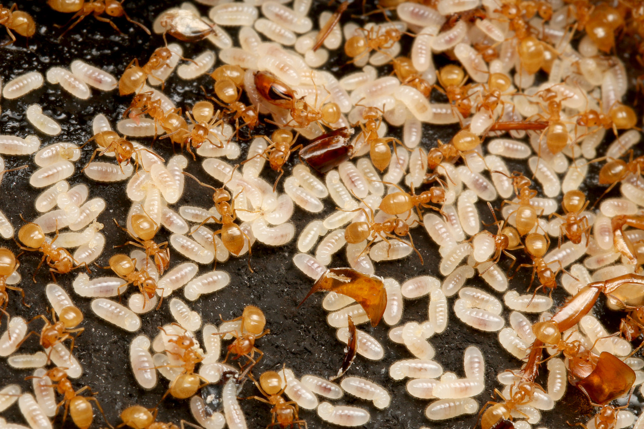 働きアリや幼虫の多いブルドックアリのコロニー。