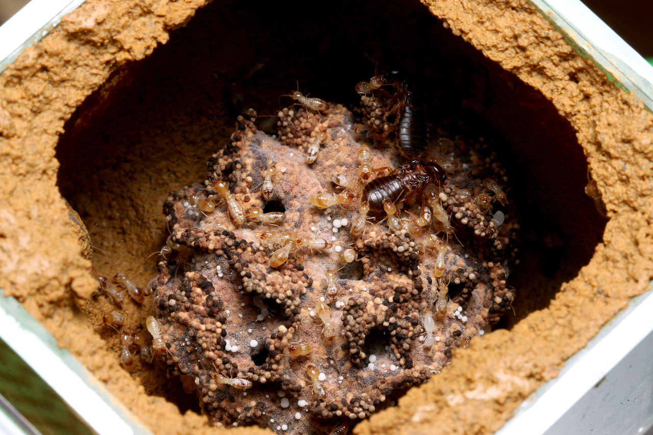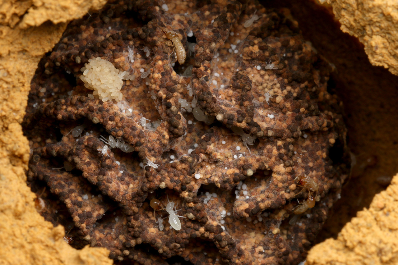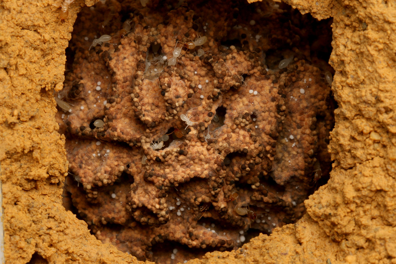 地中でキノコを育てて農業をするタイワンシロアリの菌園。