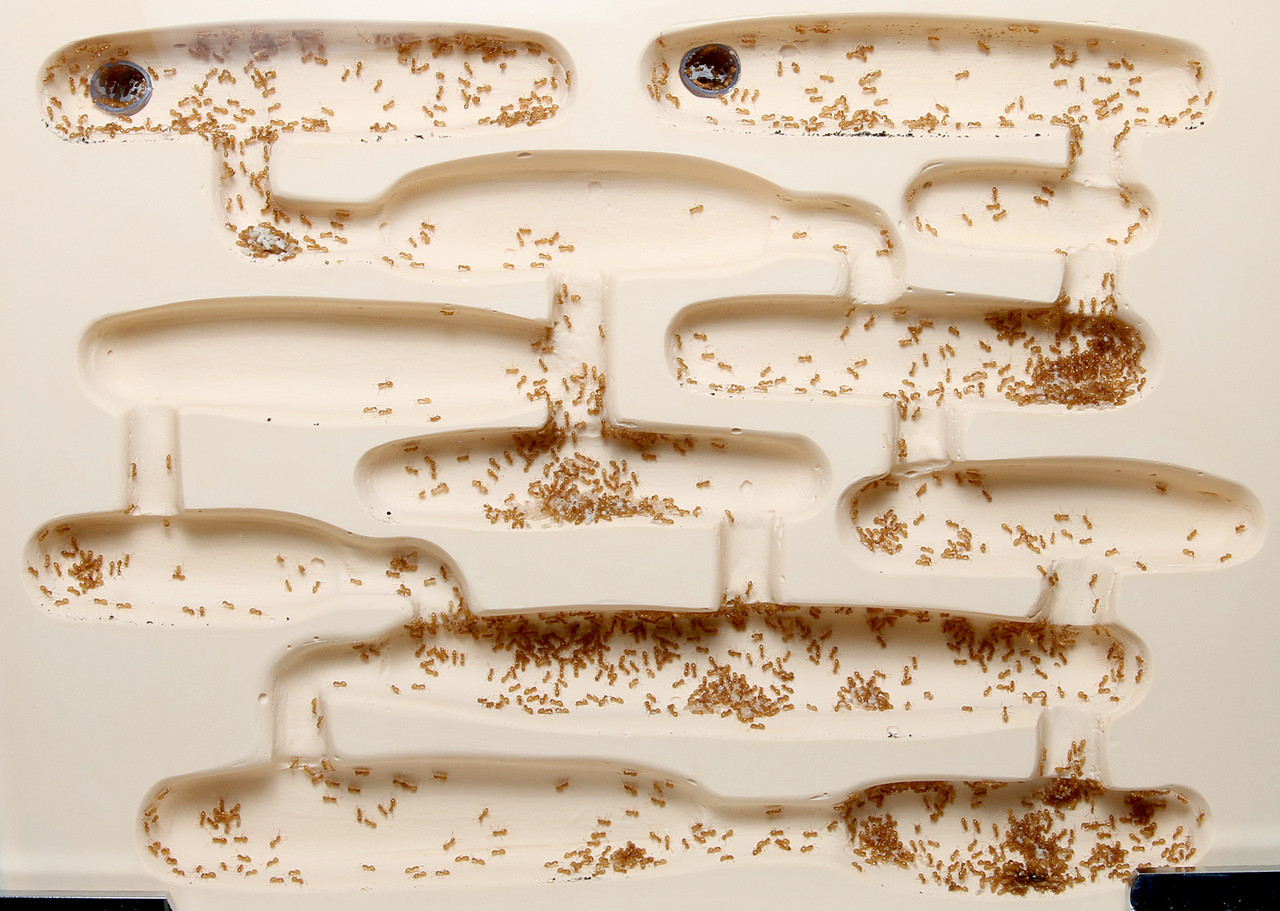 エサ場までを数メートルの通路でつなげて、長い行列を作らせてみたくなってきました。