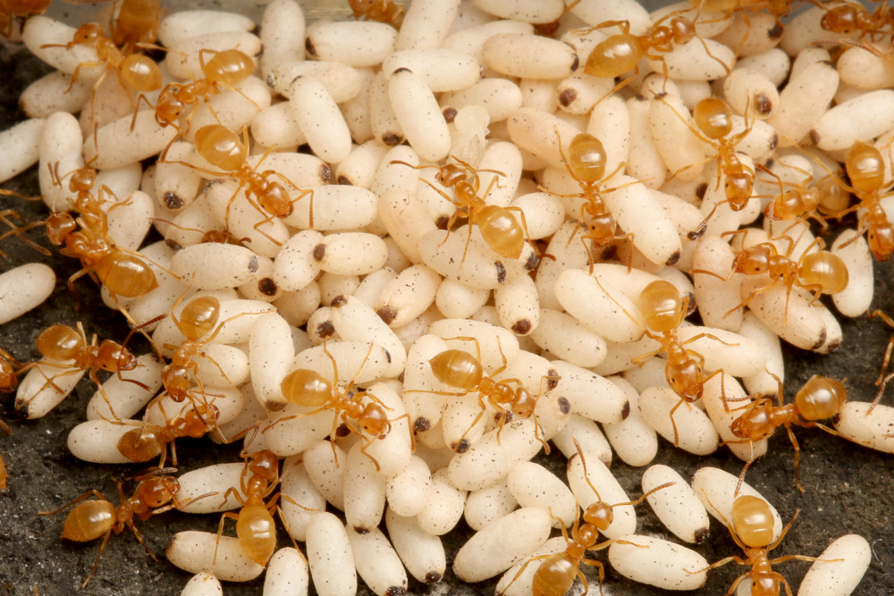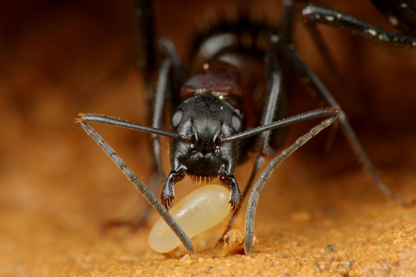 自ら繭を破くことができないため、女王アリが繭を破いて羽化の手伝いをしてあげます。