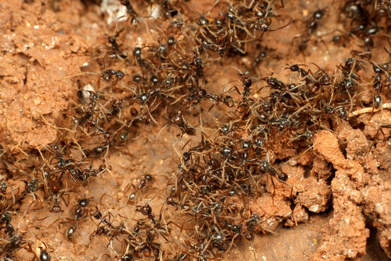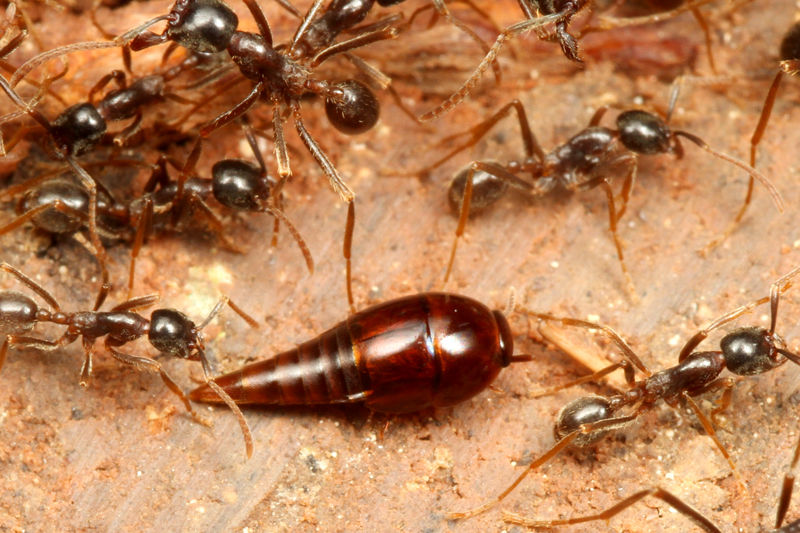 たしかに、グンタイアリの仲間は走るのが速いので、その中に紛れ込んでいる小さな虫を肉眼ですべて見つけ出すのは不可能です。
