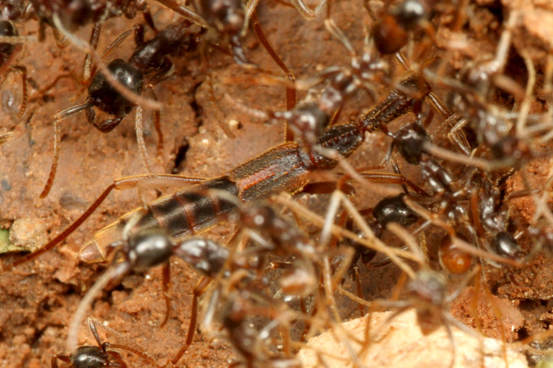こんな虫までもが、グンタイアリの行列を一緒に走っているのです。