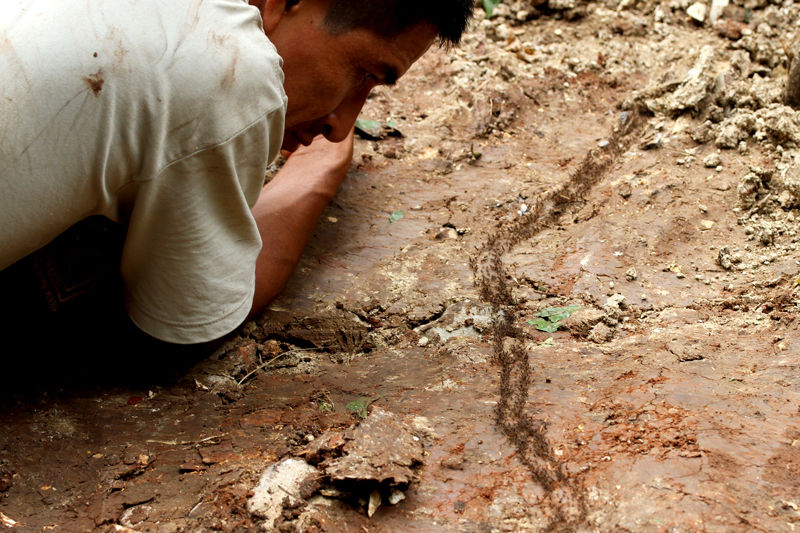 行列が地表に出ている部分はそれほど長くはないので、素早く撮影してから、すぐに採集しないと地中に入ってしまうのです。