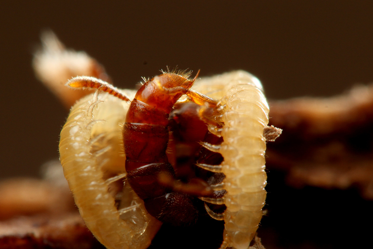 ムカデを捕食する幼虫たち。